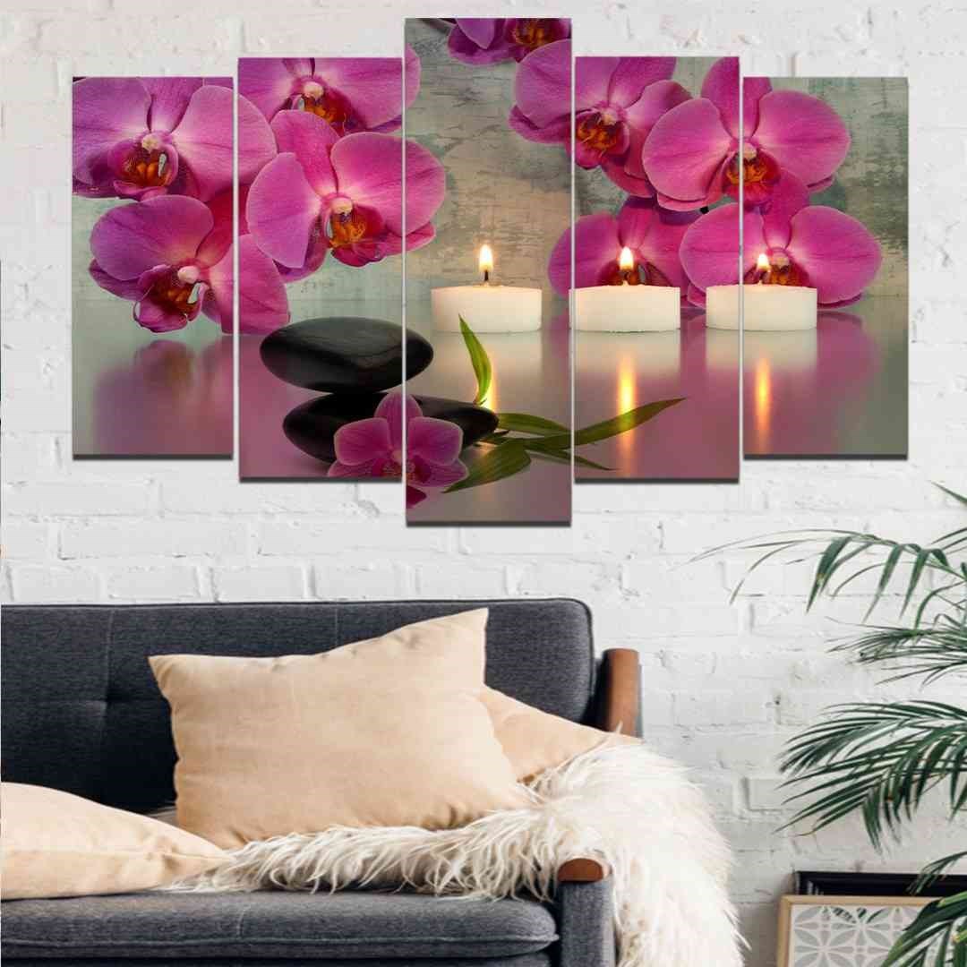 5 Parça Pembe Çiçek Mum Tasarım Mdf Tablo - 5Mdf-1251- 100X60 5Mdf-1251-