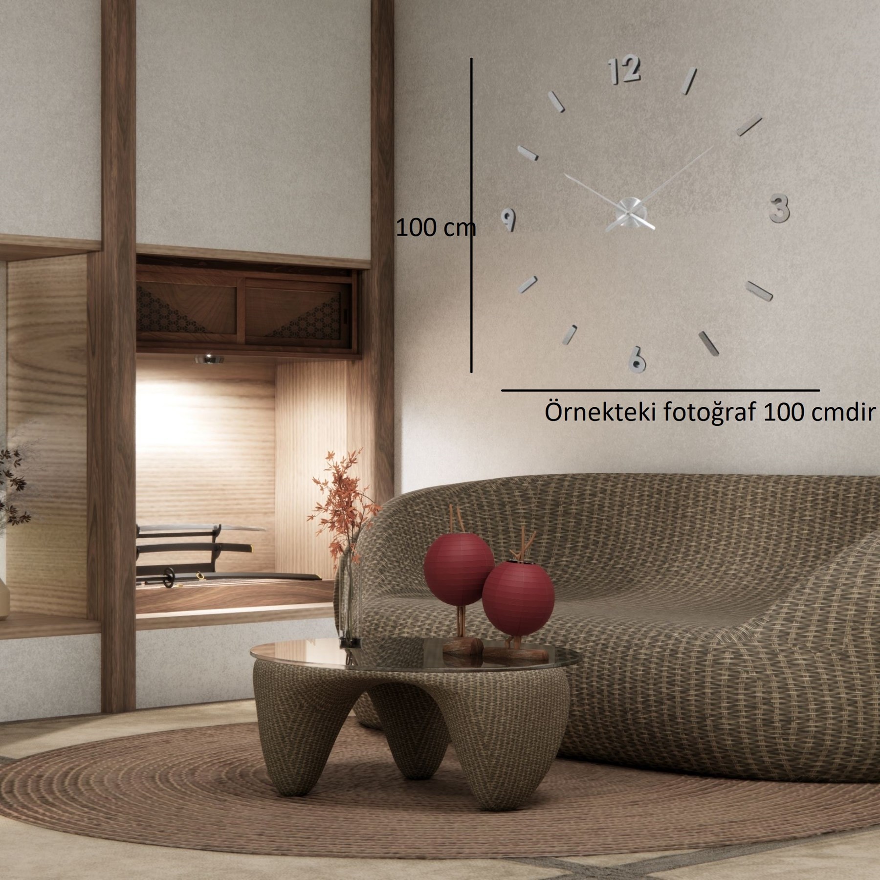3D metal görünümlü rakamlar ve minimal indeks tasarımı sayesinde saat, bulunduğu ortama modern bir atmosfer katar. Salon, oturma odası, ofis, kafe ve geniş duvar dekorasyonlarında dikkat çekici bir dekoratif obje olarak kullanılabilir.