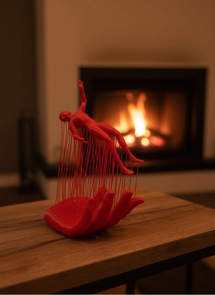 Kırmızı El Ve İnsan Figürü Dekoratif Biblo Salon Ofis Raf Ve Konsol Üstü İçin 12x18 Cm