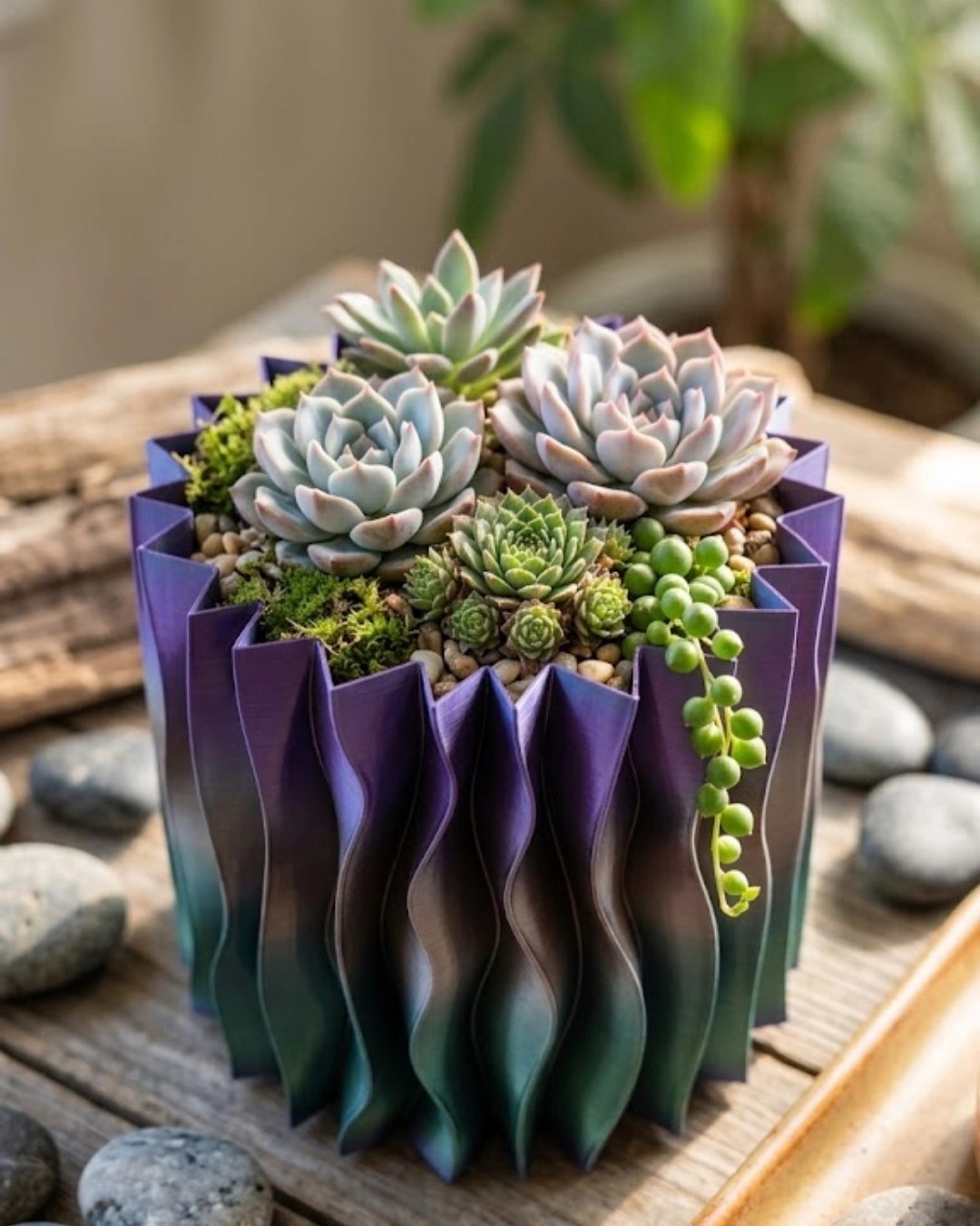 Es Dalga Formlu Mor 3d Baskı Dekoratif Vazo Modern Ev Aksesuarı