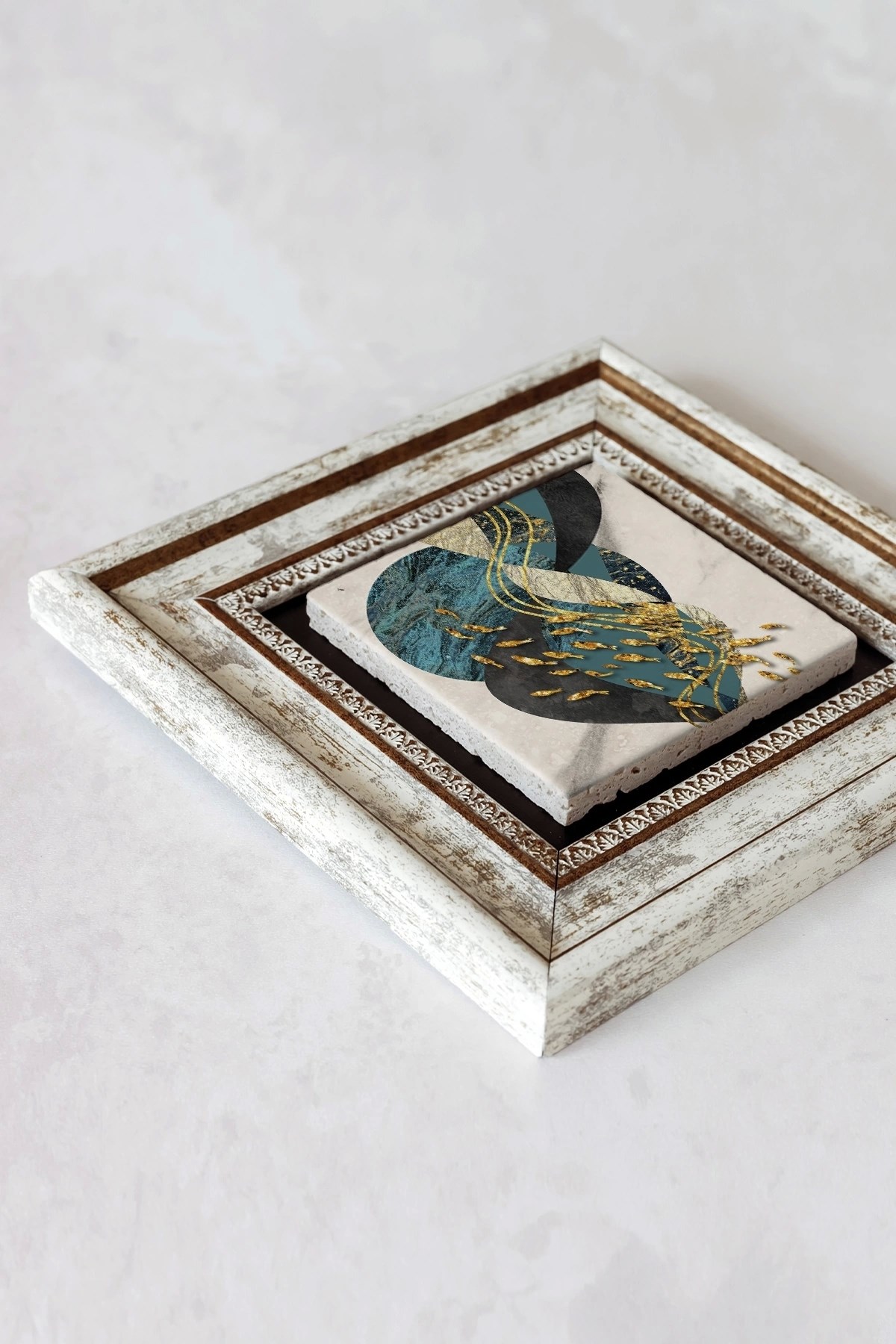 Ürün hakkında: Ölçüleri: 20 cm x 20 cm'dir. ; Kalınlık :2,5 cm'dir. ; Ürünün arka tarafında askı aparatı bulunmaktadır. ; Kullanılan çerçeveler yüksek kaliteli, eskitme görünümlü kompozit malzemeden üretilmiştir. ; Taşların yüzeyindeki baskı teknolojisi özel olup sağlığa hiçbir zararı yoktur. ; Kullanılan malzeme dağdan çıkan gerçek taş oldugu için yüzeyinde belli oranda gözenek bulunması ve renginin krem renginin tonlarını barındırması normaldir kimyasal malzeme teması Yüzey deformasyona maruz kalabilir. ; Nemli bezle silinerek temizlenebilir. ; Isıya, suya ve neme dayanıklıdır. ; Kutu içeriği: Orijinal kutu içerisinde 1 adet çerçeveli taş duvar dekoru. ; 1 adet çerçeveli duvar dekoru ağırlığı: 250 gr çerçeve askısı ile duvara montajı yapılabilir.;