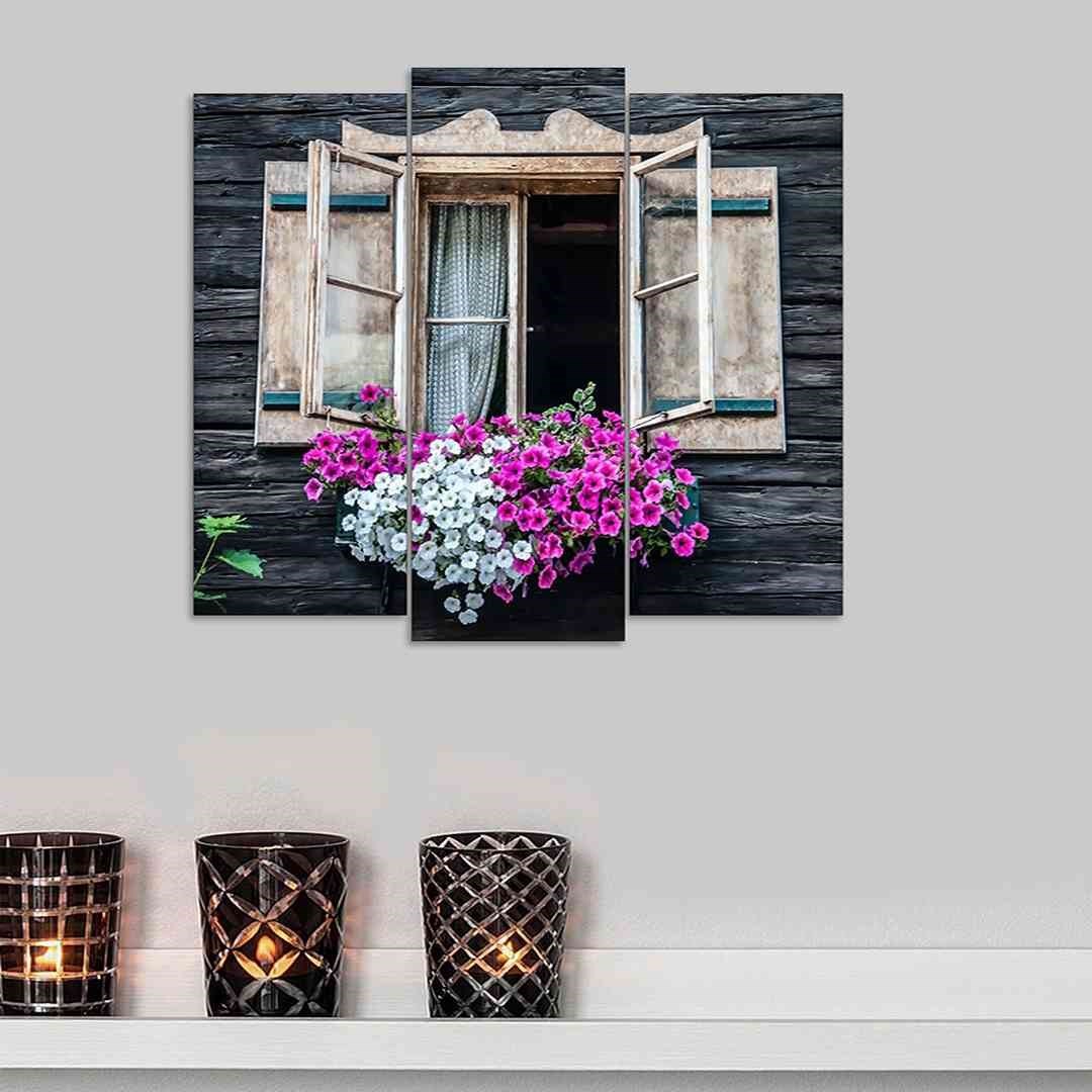 3 Parça Çiçekli Pencere Mdf Tablo - T-3Dikey-54 19X40