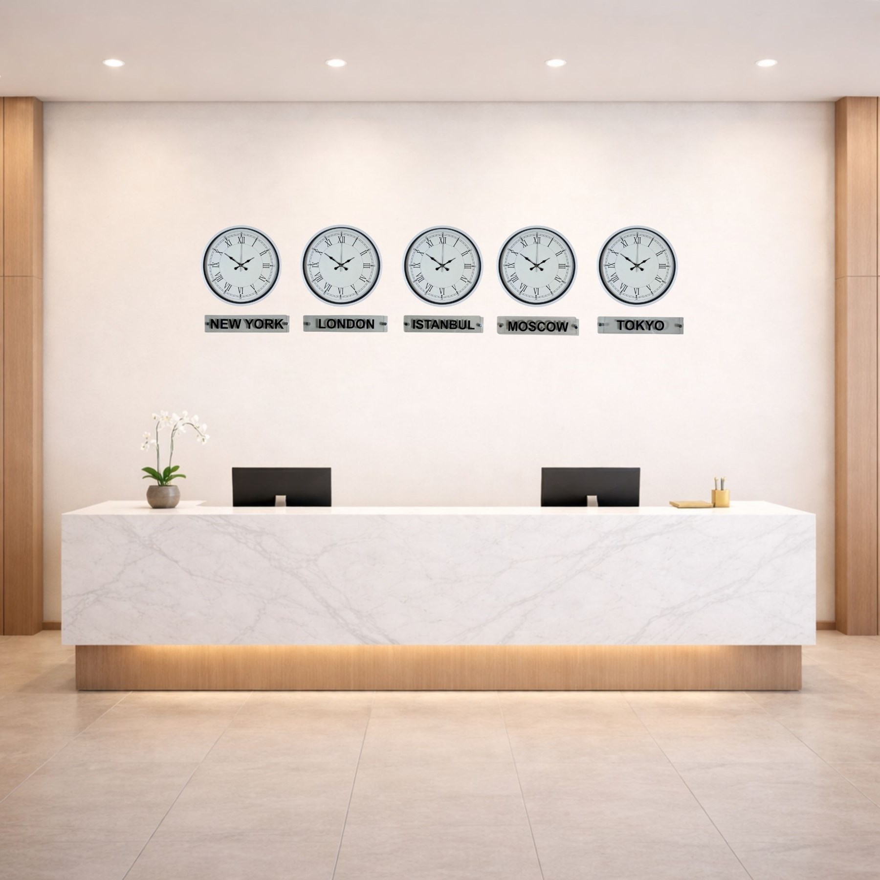 Saf Beyaz 36 Cm 5 li Tabelalı Dünya Saat Seti