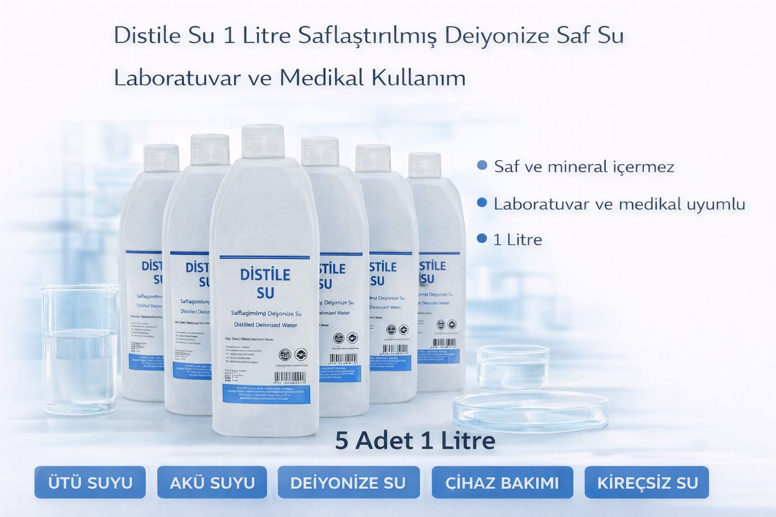 distile su, saf su 1 litre, deiyonize su, ütü suyu, akü suyu, saflaştırılmış su, laboratuvar suyu, medikal saf su, cihaz bakım suyu, kireçsiz su, distile su 10 adet