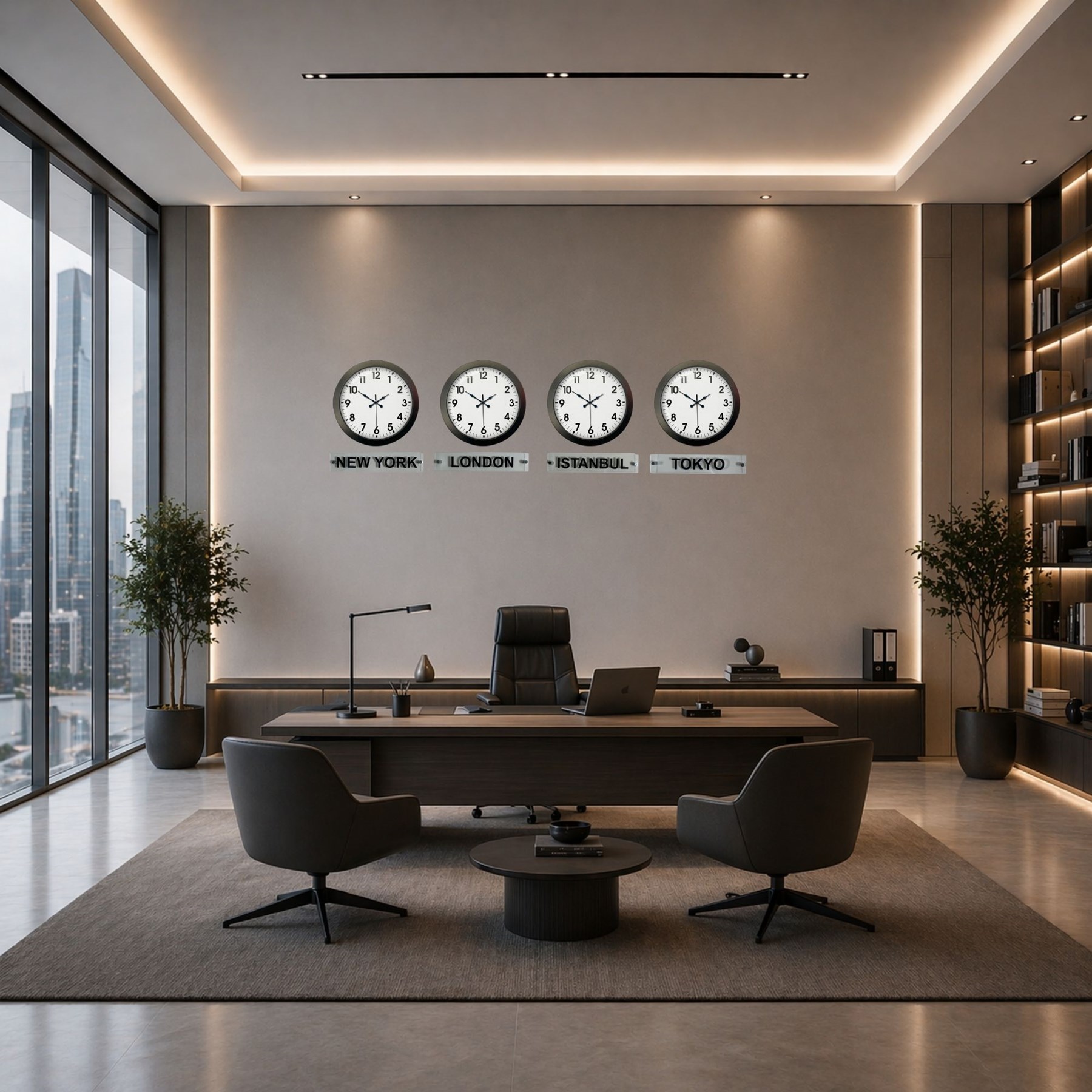 Siyah Prestij 36 Cm Metal Tabelalı Dünya Saatleri – 4’lü Siyah Set