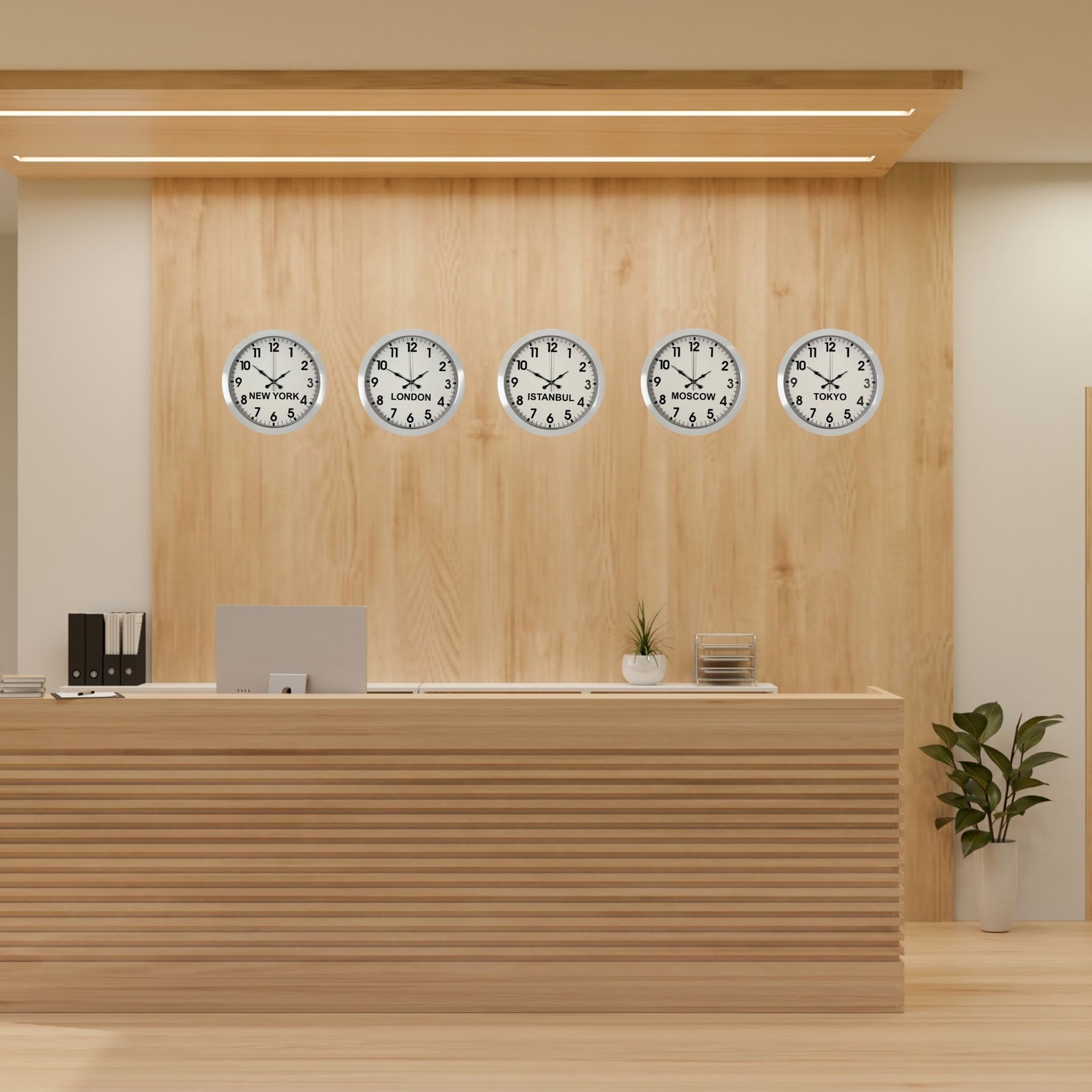 Beyaz Premium Tasarım 36 cm Metal Dünya Saatleri 5’li Set