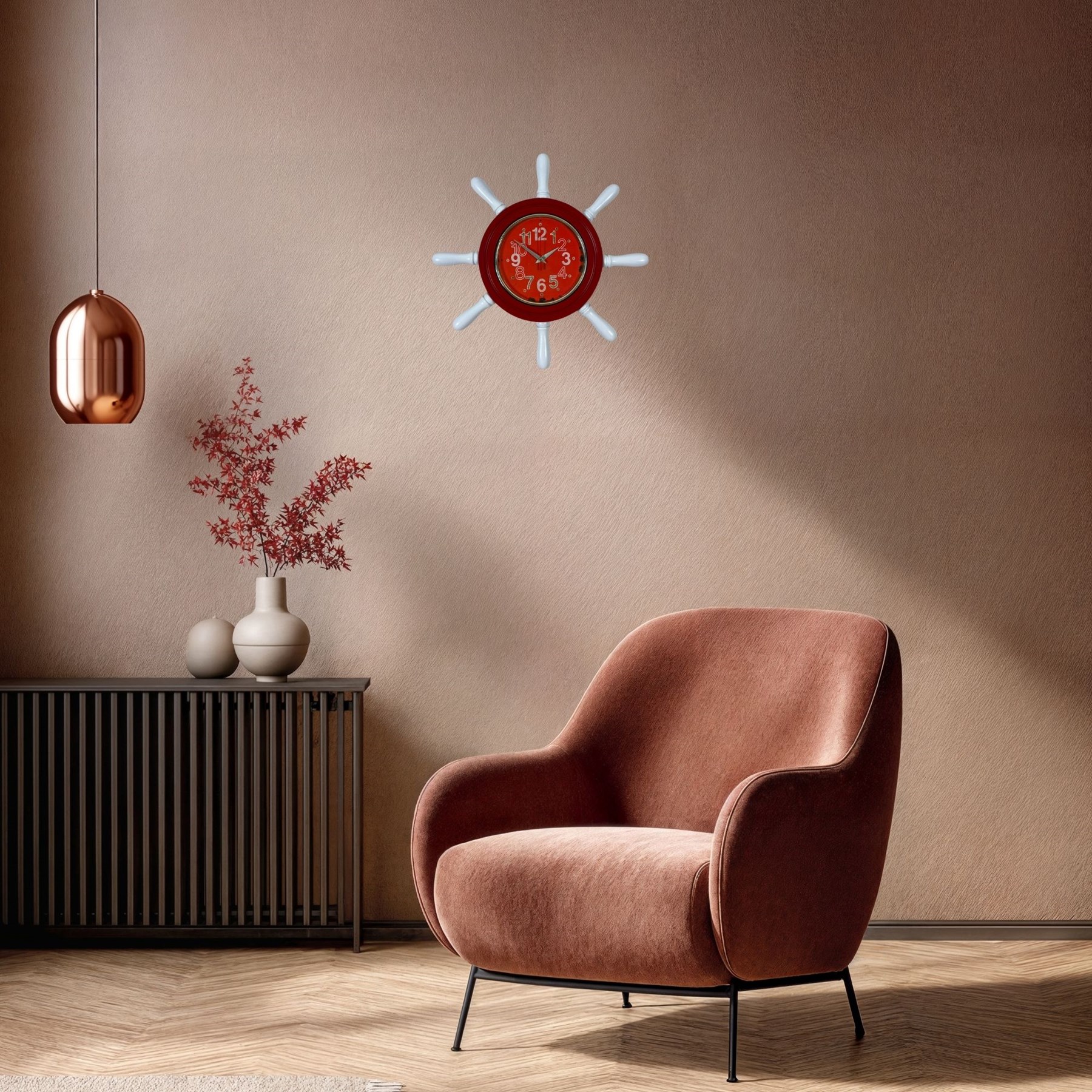 Kırmızı Nostaljik Kavelalı Dümen Duvar Saati