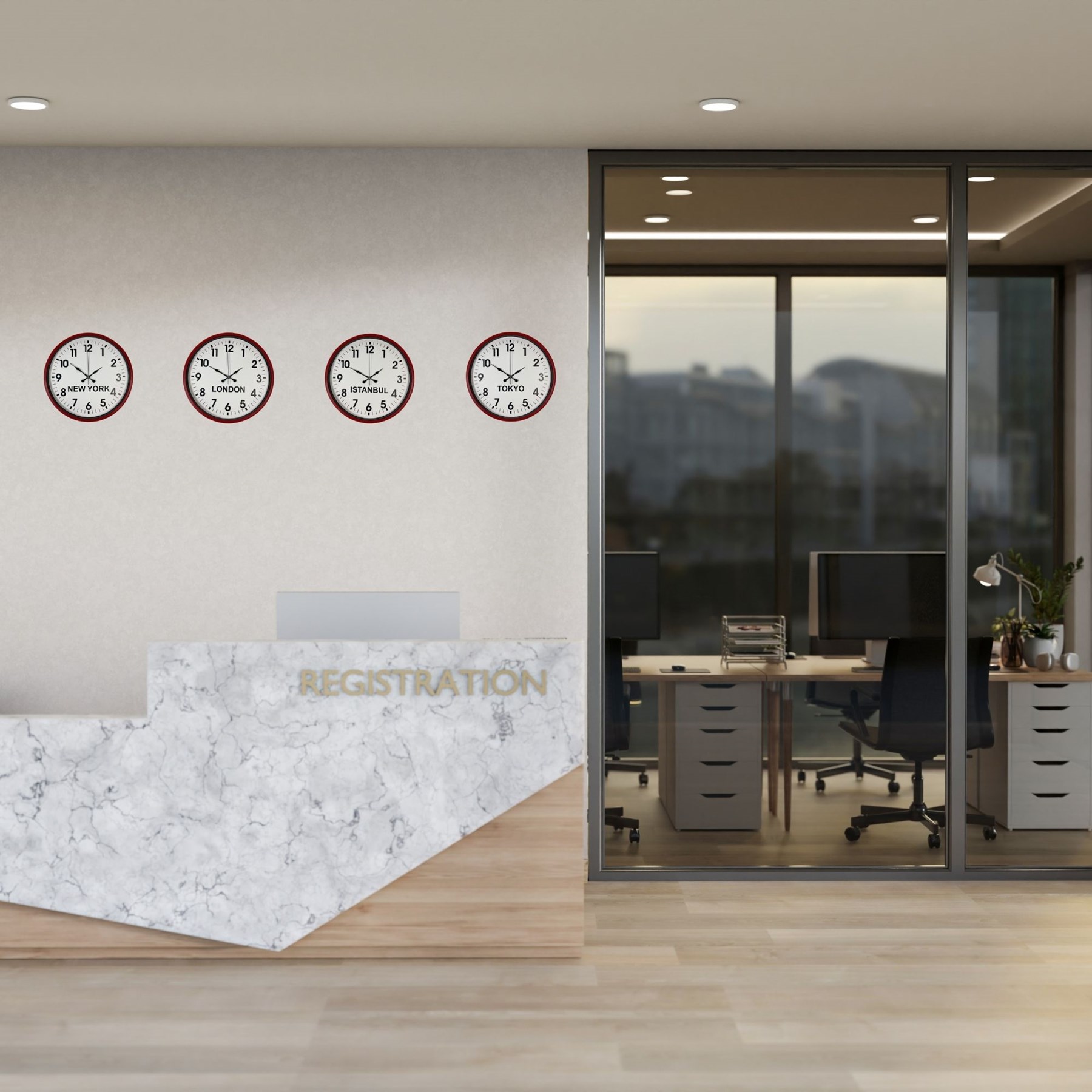 36 cm 4’lü Dünya Saatleri Kırmızı