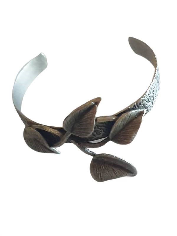 Edwol Antik Çelik Gümüş Kaplama Ayarlanabilinir Yaprak Bileklik