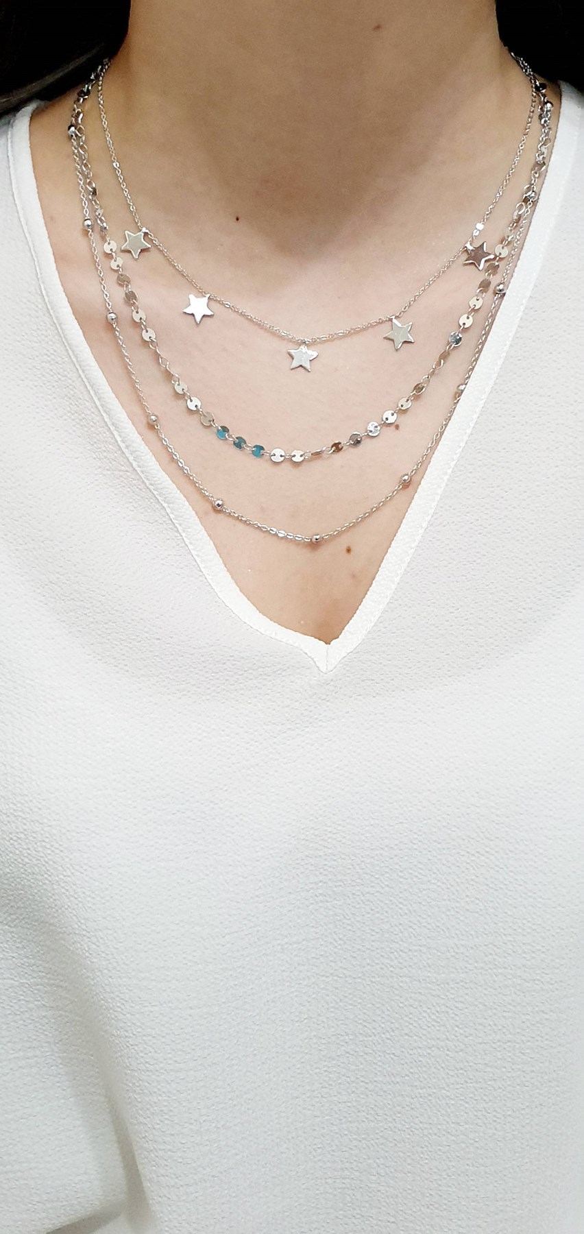 Ürün metal gümüş kaplama ve zamak dahil edilerek üretilmiştir.Kolyede bulunan kalpler 28 cm Kolye komle bo 63 cm dir.