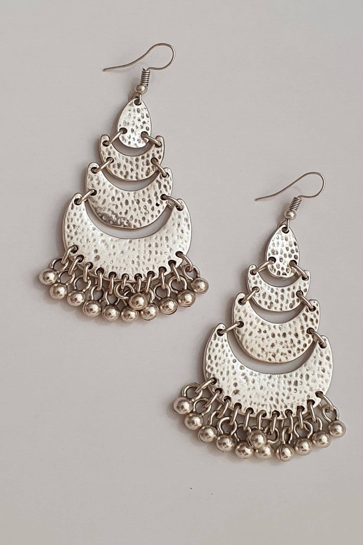 Ürünümüz Gümüş kaplamadan oluşmuştur.Küpe boyu 9 cm'dir. Gözalıcı Antik Sallantılı Küpe ile şıklığınızı tamamlayın. Ürünü kimyasal maddelerden uzak tutunuz ve üzerine (parfüm,deodarant vs.).Direkt temasından kaçınınız.Ürünlerimiz özel kutusu ile gönderilmektedir.
