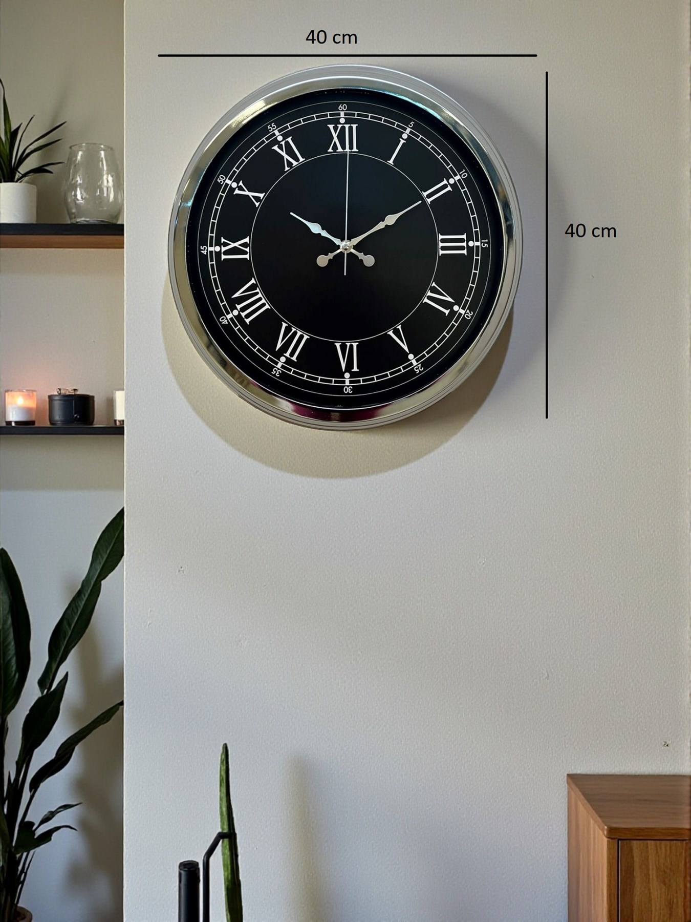 Şık ve güçlü tasarımıyla öne çıkan bu 40 cm krom metal duvar saati, yaşam alanlarınıza hem estetik hem de işlevsellik kazandırır. Parlak krom metal kasası, siyah kadran ile mükemmel bir kontrast oluşturur ve modern dekorasyonlara kolayca uyum sağlar.