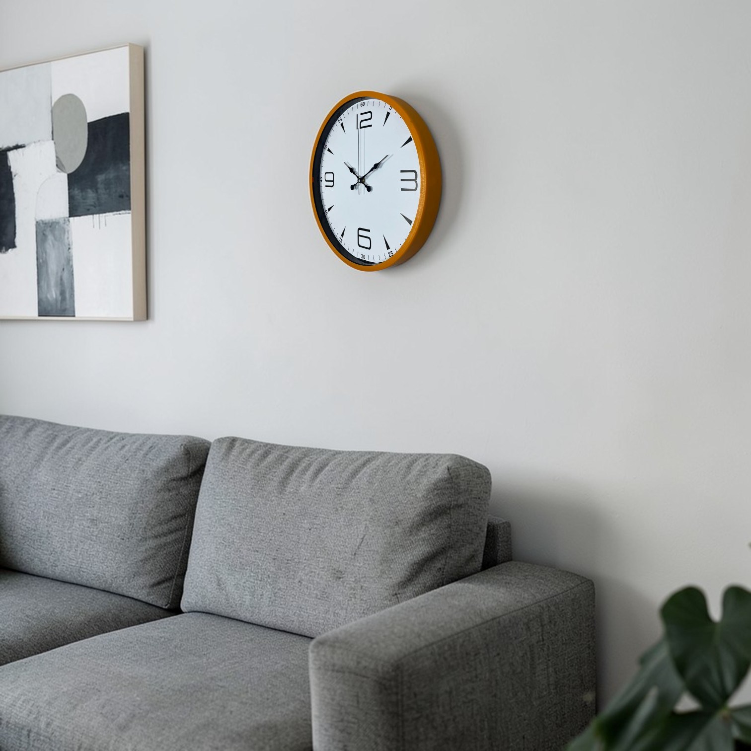 Canlı ve enerjik turuncu rengiyle öne çıkan 36 cm duvar saati, yaşam alanlarınıza dinamik ve modern bir hava katar. Turuncu çerçevesi ve beyaz kadranı sayesinde güçlü bir kontrast oluşturarak hem dekoratif hem de kolay okunabilir bir kullanım sunar. Minimal tasarımı ile salon, mutfak, ofis ve çalışma alanlarında şık bir tamamlayıcıdır.