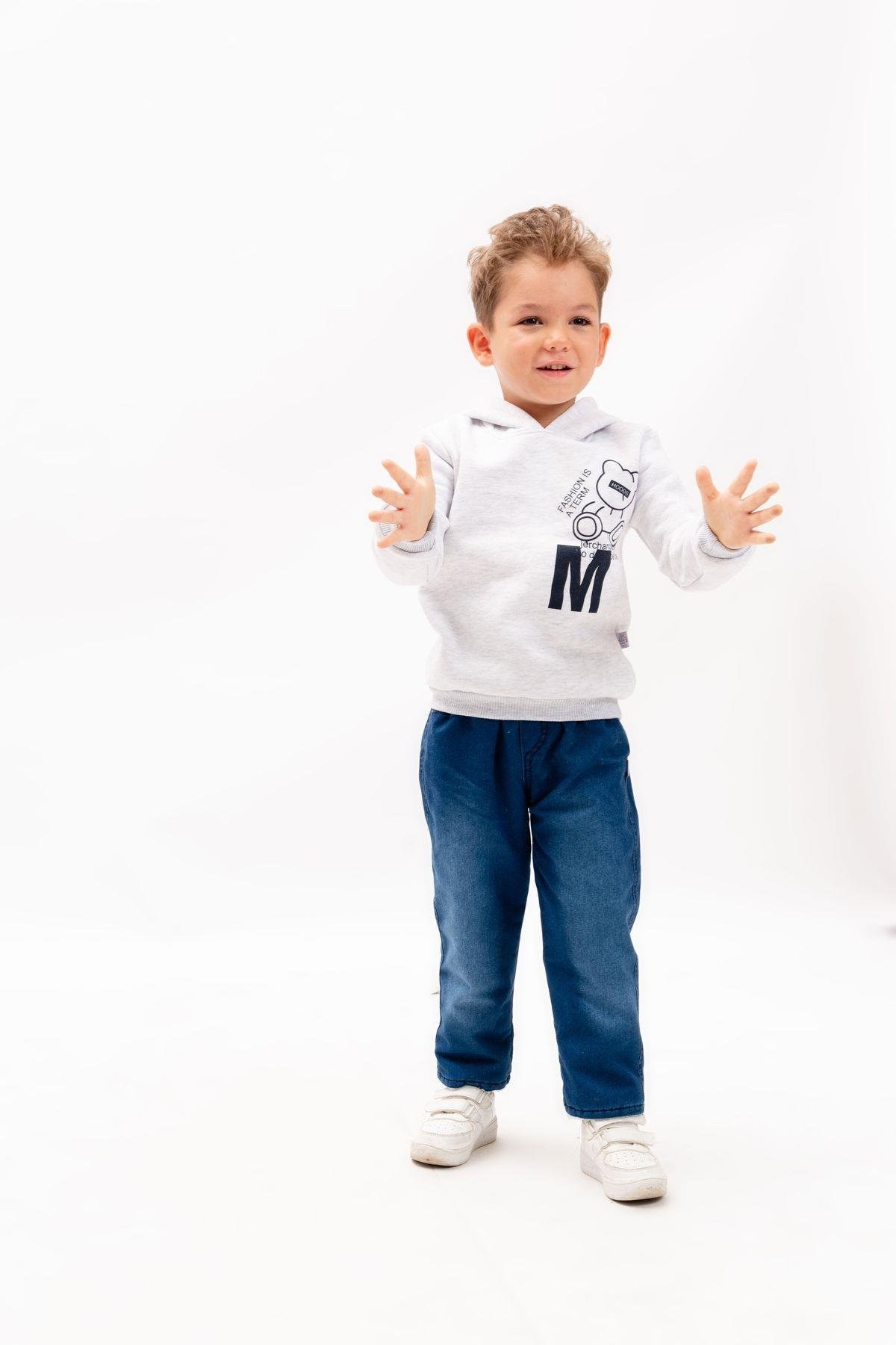 Ürün İçeriği: 1 adet kapüşonlu sweatshirt, 1 adet denim pantolon