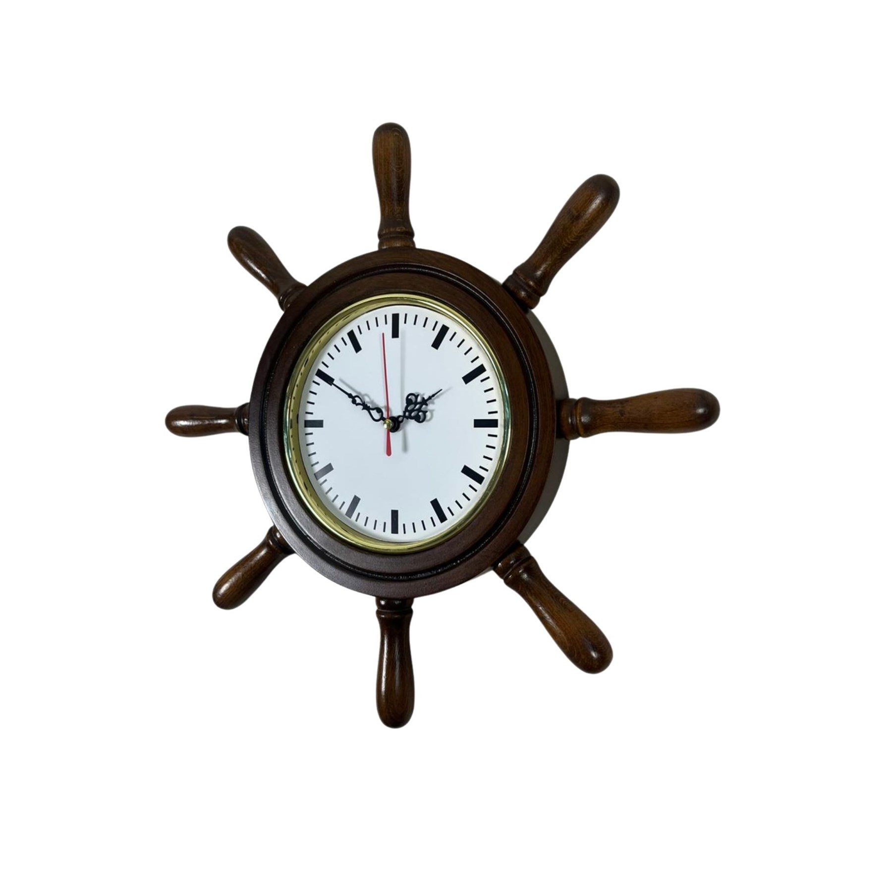 Saat üzerindeki dümen kollarının kavela boyu 8 cm’dir ve bu detay ürünün gemi dümeni görünümünü tamamlayan önemli bir dekoratif tasarım unsurudur.