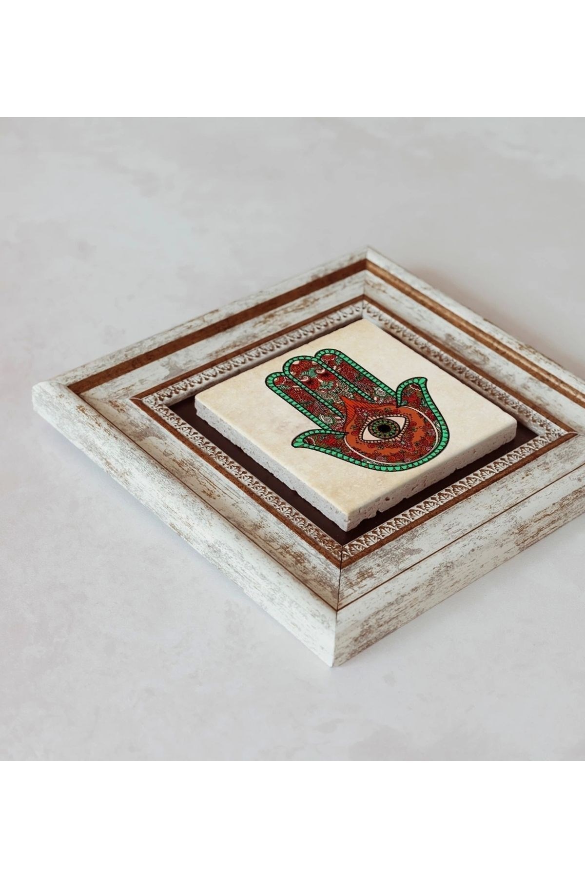 Ürün hakkında: Ölçüleri: 20 cm x 20 cm'dir. ; Kalınlık :2,5 cm'dir. ; Ürünün arka tarafında askı aparatı bulunmaktadır. ; Kullanılan çerçeveler yüksek kaliteli, eskitme görünümlü kompozit malzemeden üretilmiştir. ; Taşların yüzeyindeki baskı teknolojisi özel olup sağlığa hiçbir zararı yoktur. ; Kullanılan malzeme dağdan çıkan gerçek taş oldugu için yüzeyinde belli oranda gözenek bulunması ve renginin krem renginin tonlarını barındırması normaldir kimyasal malzeme teması Yüzey deformasyona maruz kalabilir. ; Nemli bezle silinerek temizlenebilir. ; Isıya, suya ve neme dayanıklıdır. ; Kutu içeriği: Orijinal kutu içerisinde 1 adet çerçeveli taş duvar dekoru. ; 1 adet çerçeveli duvar dekoru ağırlığı: 250 gr çerçeve askısı ile duvara montajı yapılabilir.;