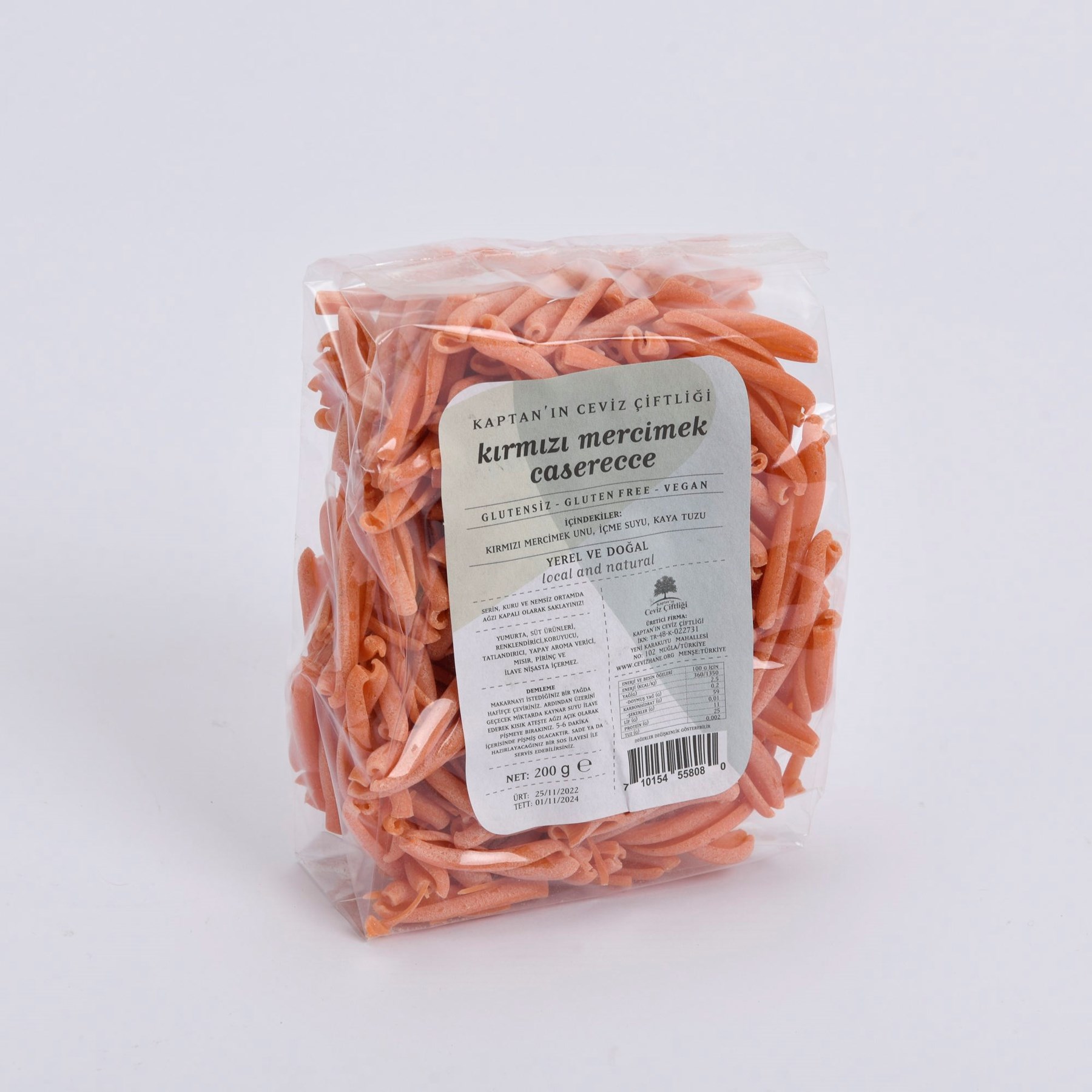 Yüksek lif ve proteiniçeriğiyle makarna yemenin farklı bir deneyimi. İçeriğinde sadece öğütülmüşyerli kabuklu kırmızı mercimek ve su olan lif açısından olduğu kadar protein vemikro besinler açısından da zengin kırmızı mercimek Caserecce dir.
