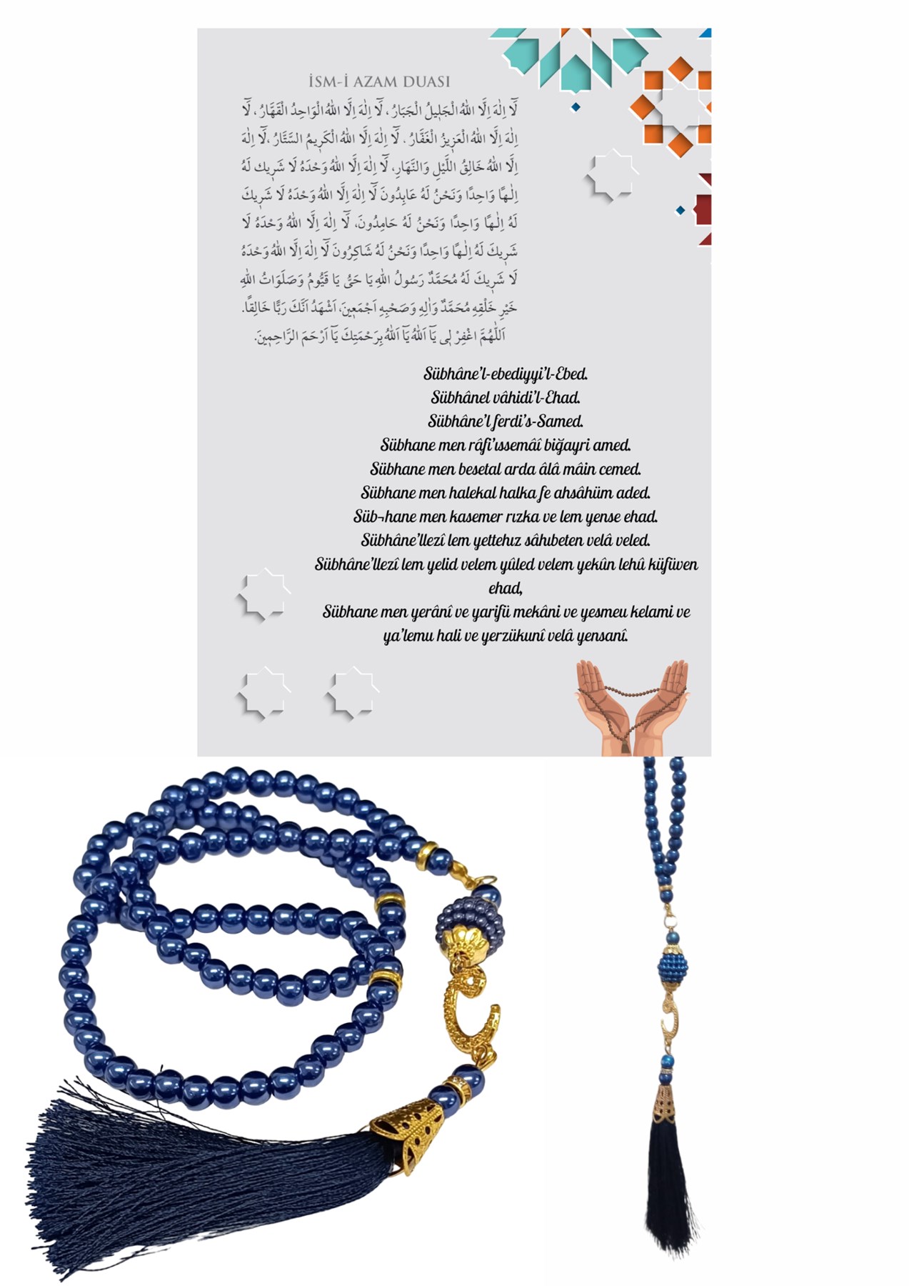 Namaz Tesbihi Vavlı 99'lu Cam İncili İsmi Azam Dua Kartı İle Lacivert Renk Hediyelik