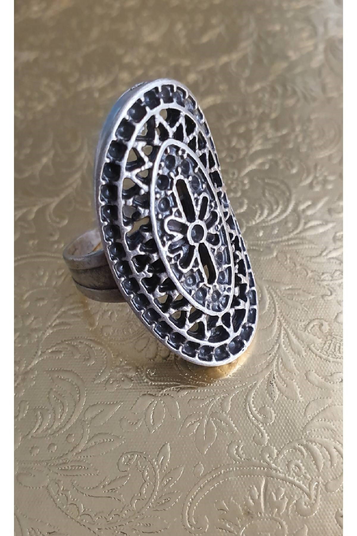 Ürün çelik ve gümüş kaplamadır. Yüzüğ'ün üst bölmesi 3 cm'dir.Ayarlanabilinir çelik yüzük ile şıklığınız tamamlayarak, Özgür ruhunuzu yansıtın. Ürünü kimyasal maddelerden uzak tutunuz ve üzerine (parfüm,deodarant vs.) Direkt temasından kaçınınız.