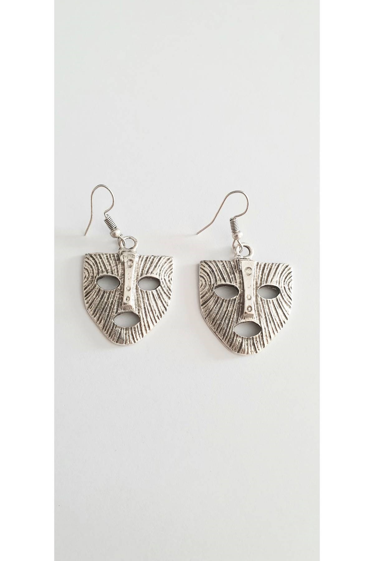 Ürün çelik ve gümüş kaplamadır. Maske küpe boyu 3 cm'dir. Çelik küpe ile şıklığınız tamamlayarak, Özgür ruhunuzu yansıtın. Ürünü kimyasal maddelerden uzak tutunuz ve üzerine (parfüm,deodarant vs.) Direkt temasından kaçınınız.
