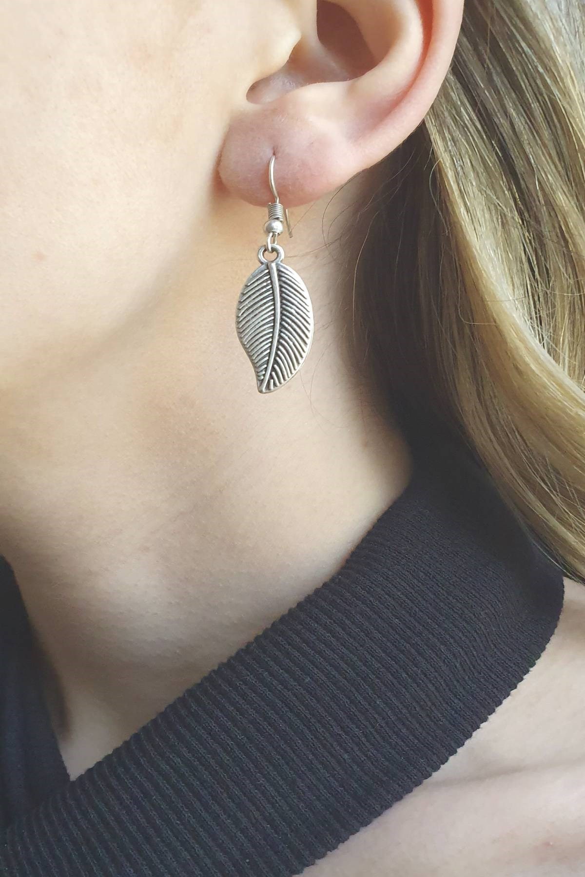 Ürünümüz Gümüş kaplama ve antik çelikten üretilmiştir. Küpe boyu 3 cm'dir. Gözalıcı Yaprak Küpe ile şıklığınızı tamamlayın. Ürünü kimyasal maddelerden uzak tutunuz ve üzerine (parfüm,deodarant vs.).Direkt temasından kaçınınız.