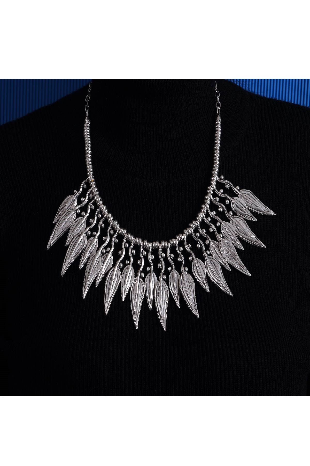 Ürün metal gümüş kaplama ve zamak dahil edilerek üretilmiştir.Kolye boyu 64 cm dir. Kolye ucunda bulunan yaprak objelerin boyu 6 cm ile 5 cm arasındadır. Gümüş kaplama antik kolye ile şıklığınız tamamlayarak,özgür ruhunuzu yansıtın. Ürünü kimyasal maddelerden uzak tutunuz ve üzerine (parfüm,deodarant vs.) Direkt temasından kaçınınız.