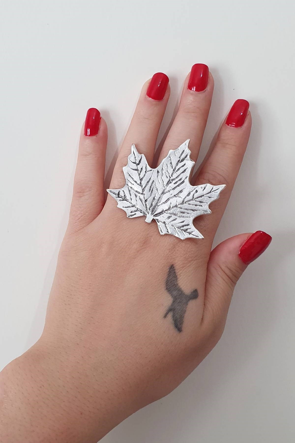Ürün çelik ve gümüş kaplamadır. Ayarlanabilinir yüzüktür.Yaprak yüzük boyu ve en 4 cm'dir. Yaprak çelik yüzük ile şıklığınız tamamlayarak, Özgür ruhunuzu yansıtın. Ürünü kimyasal maddelerden uzak tutunuz ve üzerine (parfüm,deodarant vs.) Direkt temasından kaçınınız.