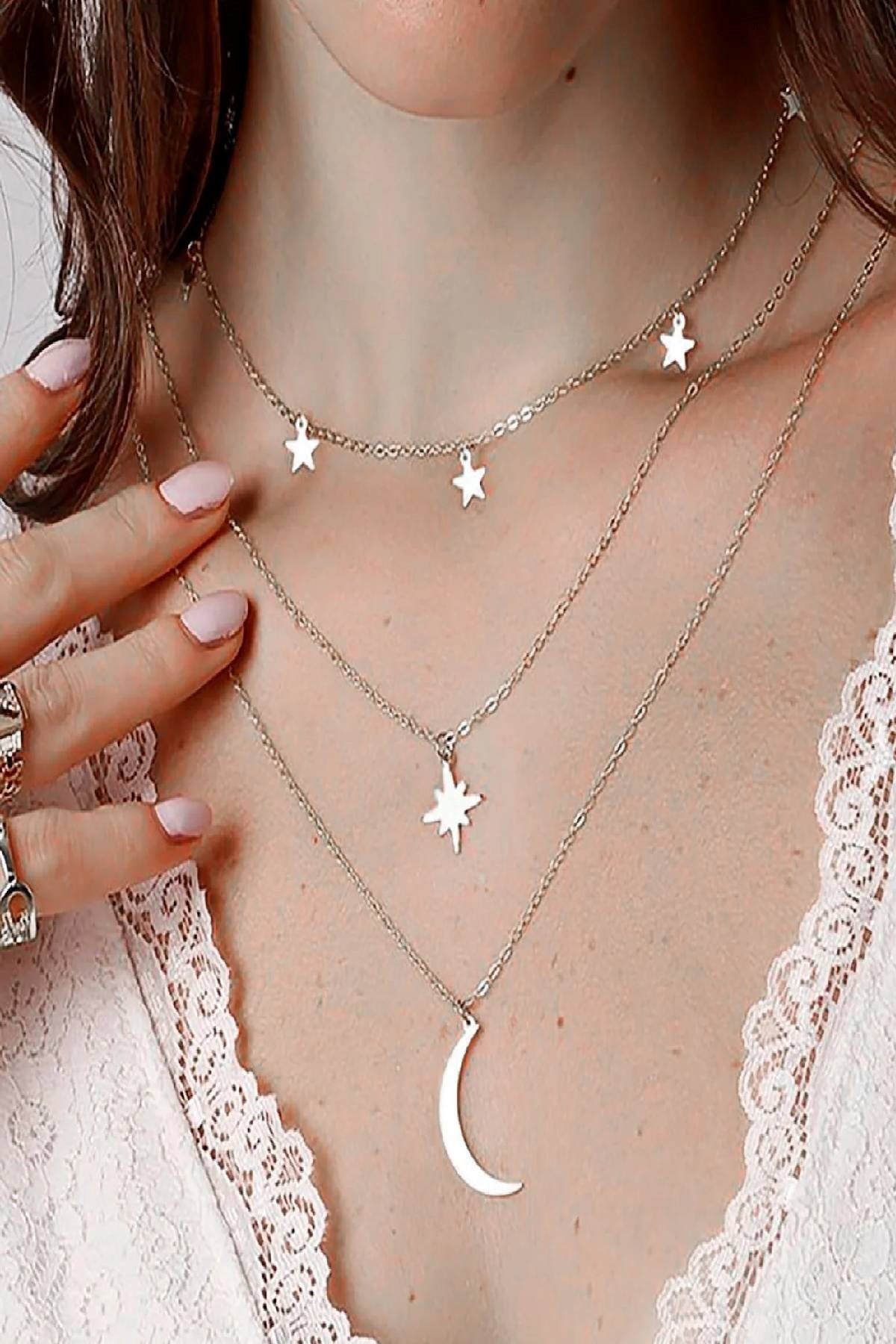 Ürün Gümüş kaplamadan ve çelikten üretilmiştir.Yıldız objelerden oluşmaktadır. Uzun süreli kullanım için parfüm,krem vb. kimyasal ürünlerle doğrudan temasından kaçınınız. 24 cm dir. Kararma yapmaz. Takılarımız düzenle saklayabilmeniz ve sevdiklerinize hediye edebilmeniz için özel kutusu ile gönderilmektedir. .