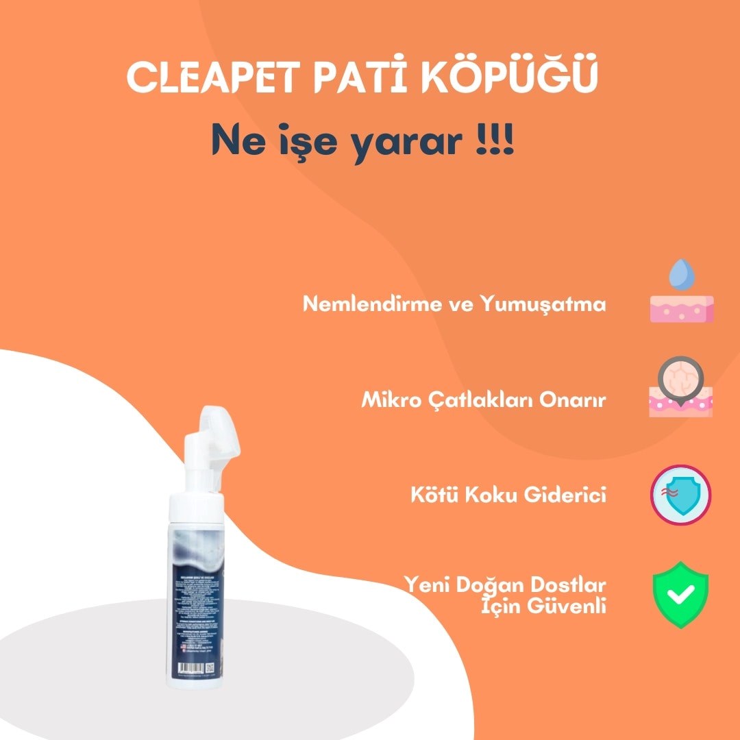 GÜNLÜK PATİ TEMİZLEME KÖPÜĞÜ, pati tüylerine ve derisine yumuşaklık ve parlaklık kazandırırken, mikro çatlakların onarımına da yardımcı olur. Bu özellikleri ile, hem sağlıklı hem de bakımlı patilere sahip olmanızı sağlar. Cleapet markasının güvenilirliği ile, köpeğinizin patilerini korumak artık daha kolay.
