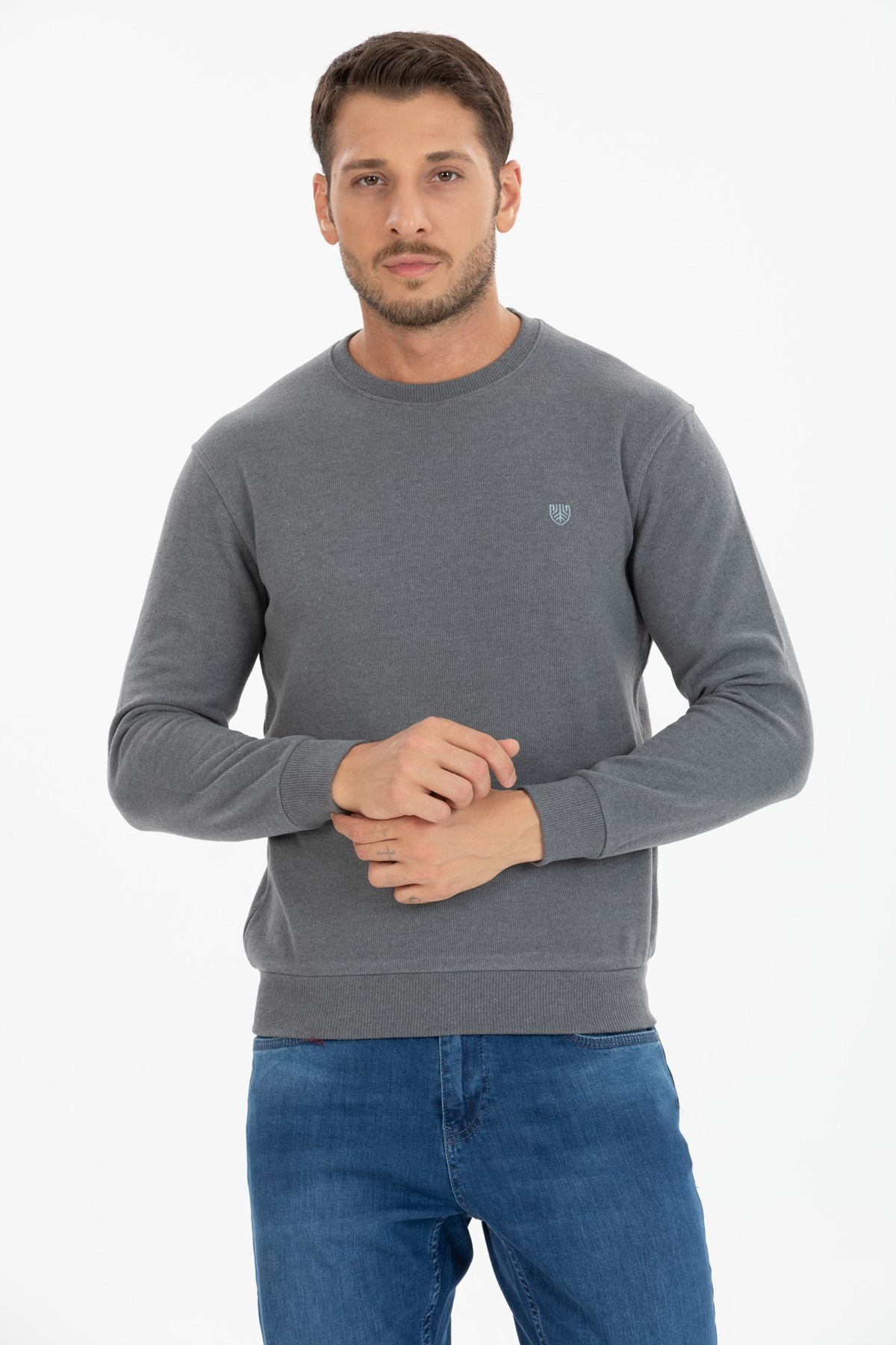 Erkek Koyu Gri Standart Fit Normal Kesim Pamuk 0 Sıfır Yaka Sweatshirt