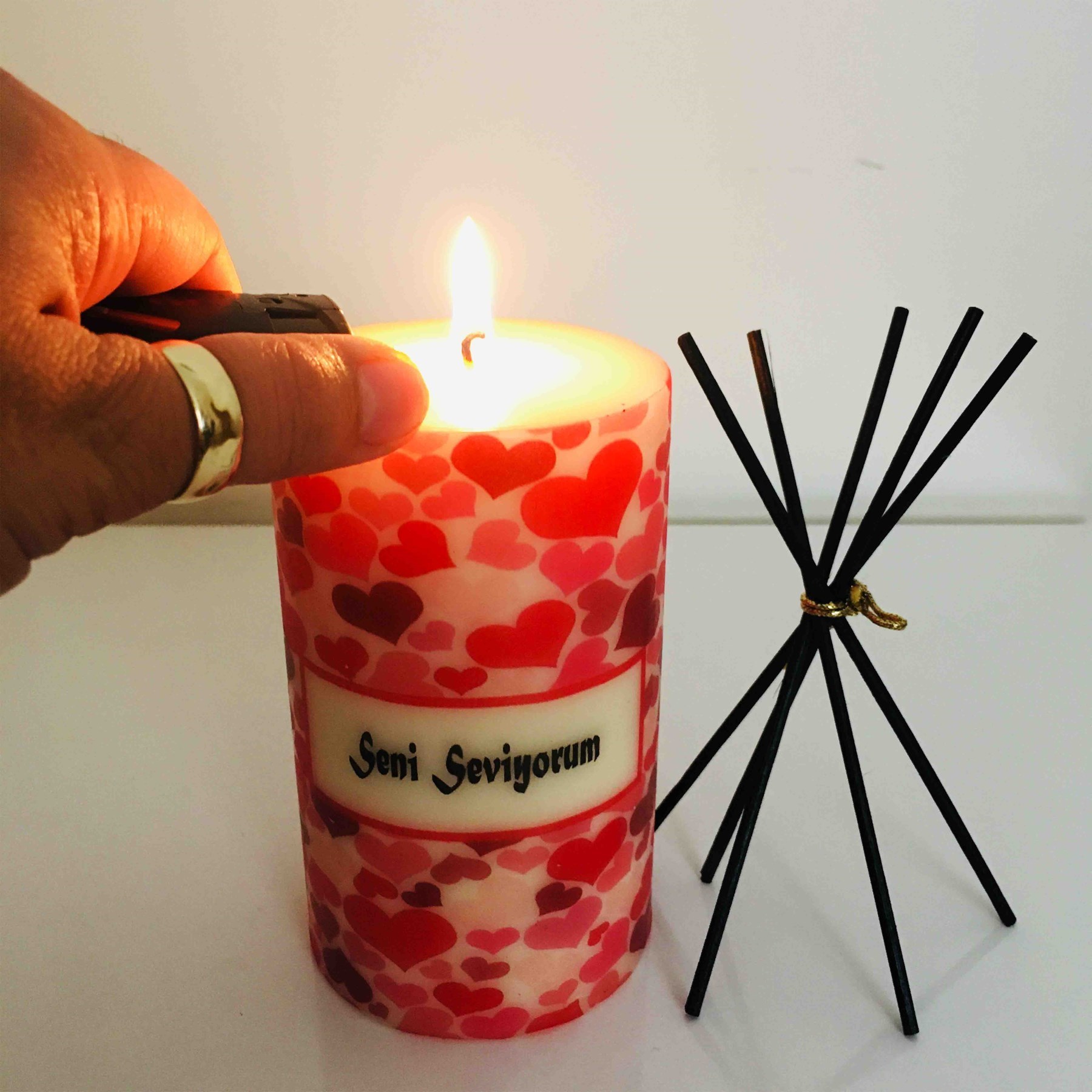 Sevgililer Gününe Özel Seni Seviyorum Temalı Kalpli Desen Baskılı Mum 2