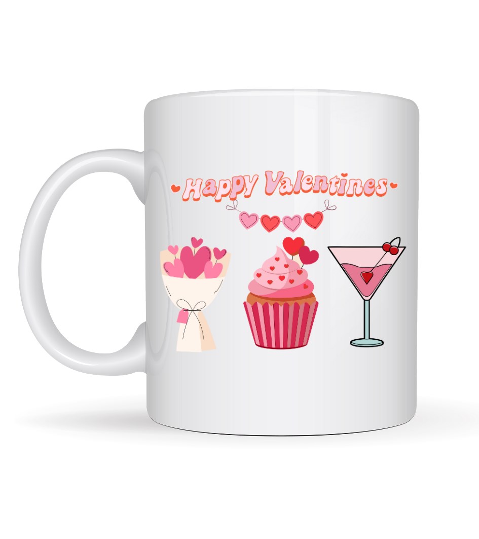 Kalpler, cupcake ve romantik detaylarla süslenmiş Happy Valentines tasarımlı bu porselen kupa; sevgiline, eşine ya da kendine alabileceğin en şık ve anlamlı hediyelerden biri! ???