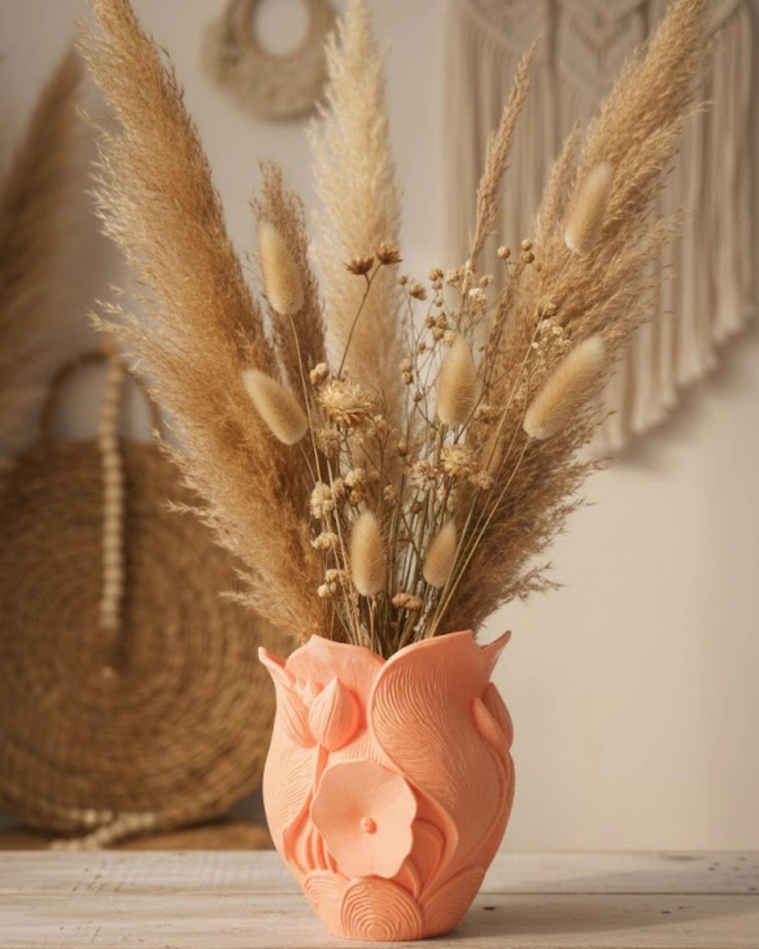 3d Özel Baskı Turuncu Çiçekli Dekoratif Vazo Salon Ofis Dekoru