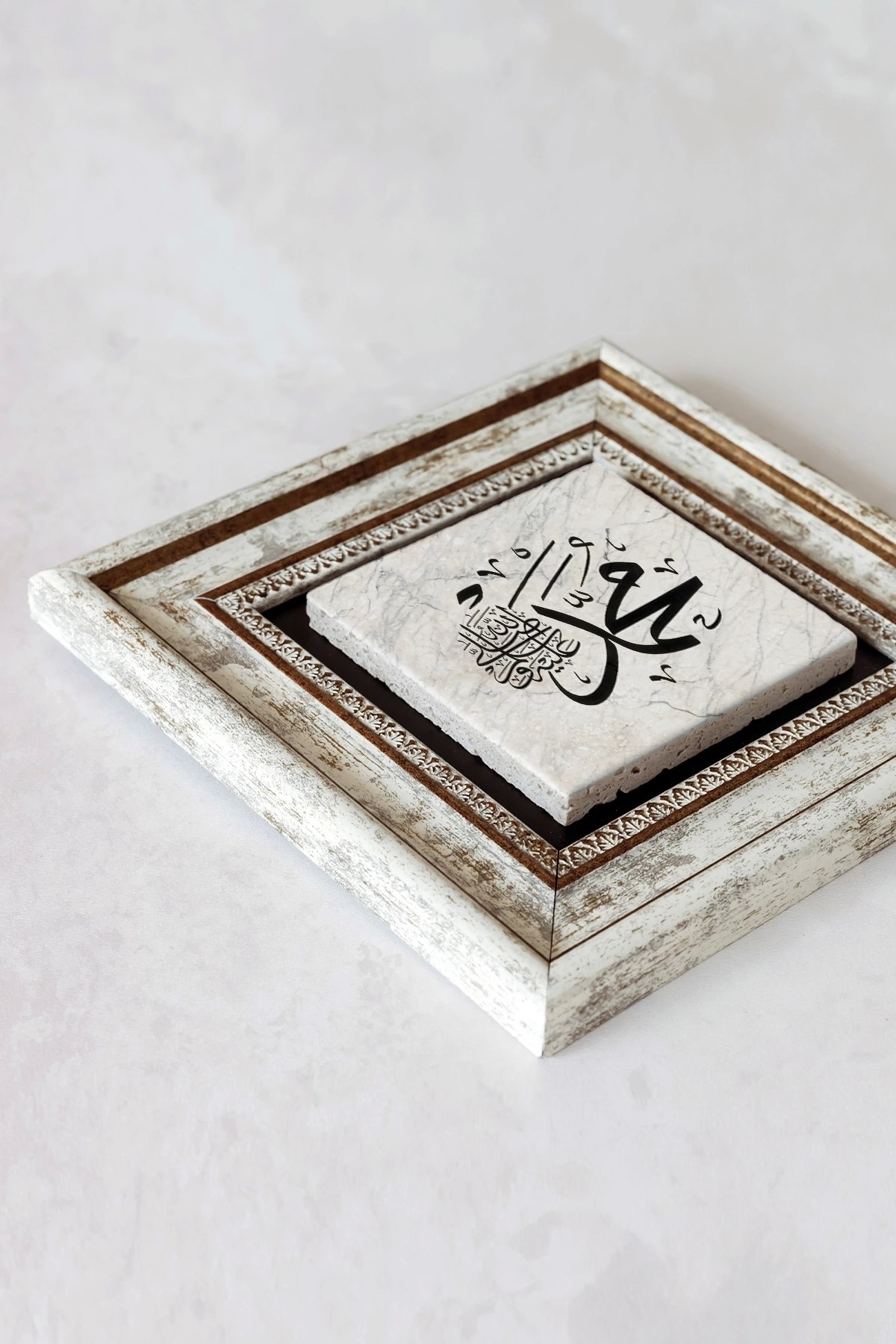 Ürün hakkında: Ölçüleri: 20 cm x 20 cm'dir. ; Kalınlık :2,5 cm'dir. ; Ürünün arka tarafında askı aparatı bulunmaktadır. ; Kullanılan çerçeveler yüksek kaliteli, eskitme görünümlü kompozit malzemeden üretilmiştir. ; Taşların yüzeyindeki baskı teknolojisi özel olup sağlığa hiçbir zararı yoktur. ; Kullanılan malzeme dağdan çıkan gerçek taş oldugu için yüzeyinde belli oranda gözenek bulunması ve renginin krem renginin tonlarını barındırması normaldir kimyasal malzeme teması Yüzey deformasyona maruz kalabilir. ; Nemli bezle silinerek temizlenebilir. ; Isıya, suya ve neme dayanıklıdır. ; Kutu içeriği: Orijinal kutu içerisinde 1 adet çerçeveli taş duvar dekoru. ; 1 adet çerçeveli duvar dekoru ağırlığı: 250 gr çerçeve askısı ile duvara montajı yapılabilir.;