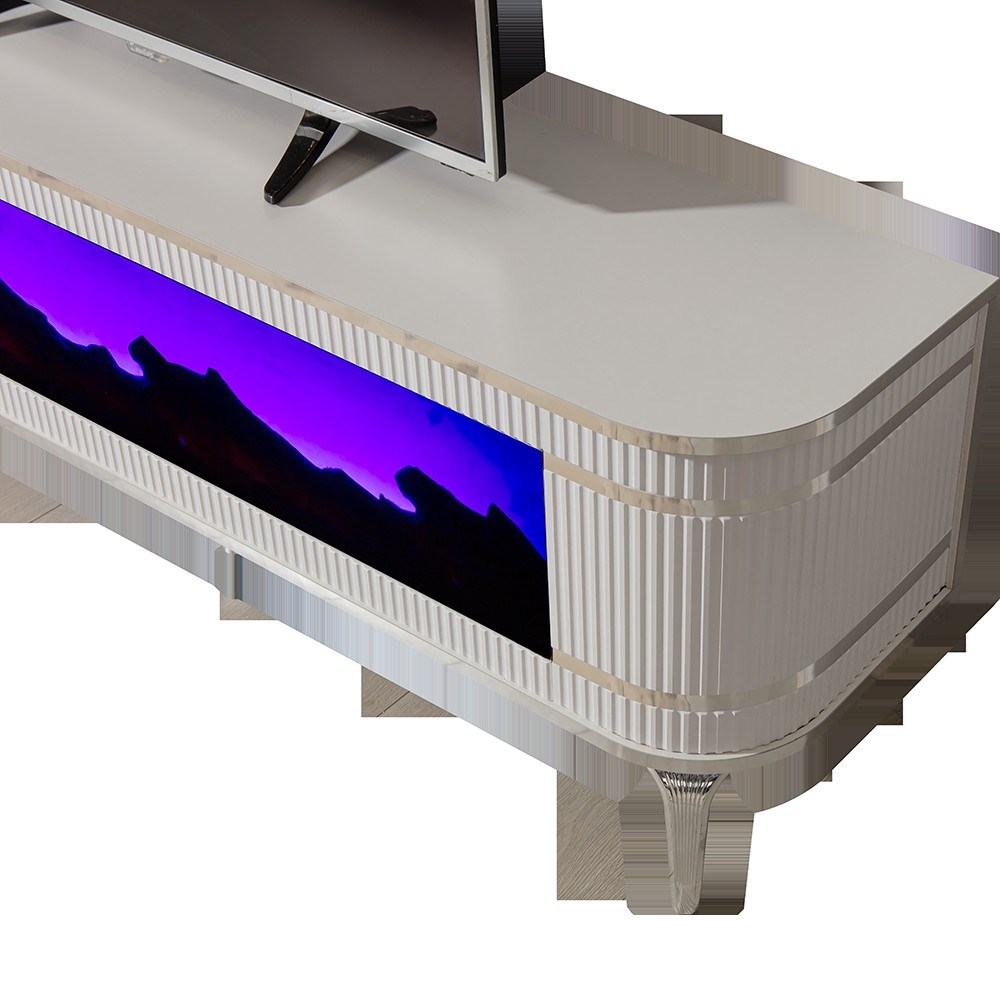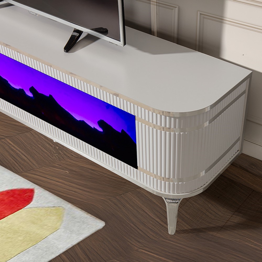 Heatwave Beyaz TV Ünitesi, yalın beyaz yüzeyi ve teknoloji odaklı donanımıyla modern salonlara ferah ve sofistike bir görünüm kazandırır.