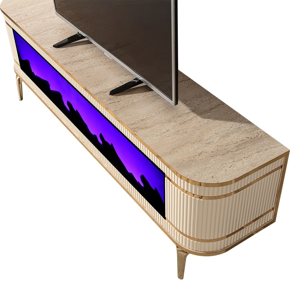 Heatwave Traverten TV Ünitesi, traverten taş dokulu yüzeyiyle doğallığı ve zarafeti teknolojiyle buluşturur. Estetik çizgileri ve akıllı fonksiyonları sayesinde salonunuza hem sıcaklık hem de modern bir karakter kazandırır.