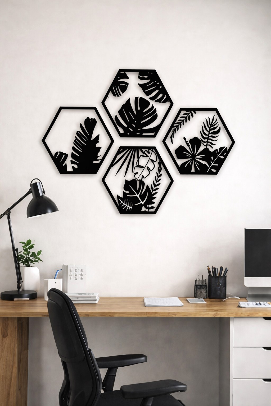 HexaLeaf, doğadan ilham alan tropikal yaprak desenleri ile tasarlanmış, altıgen formdaki modern ahşap duvar dekorudur. Minimal ve şık tasarımı sayesinde salon, oturma odası, yatak odası, ofis ve çalışma alanlarında mekâna estetik bir hava katar.