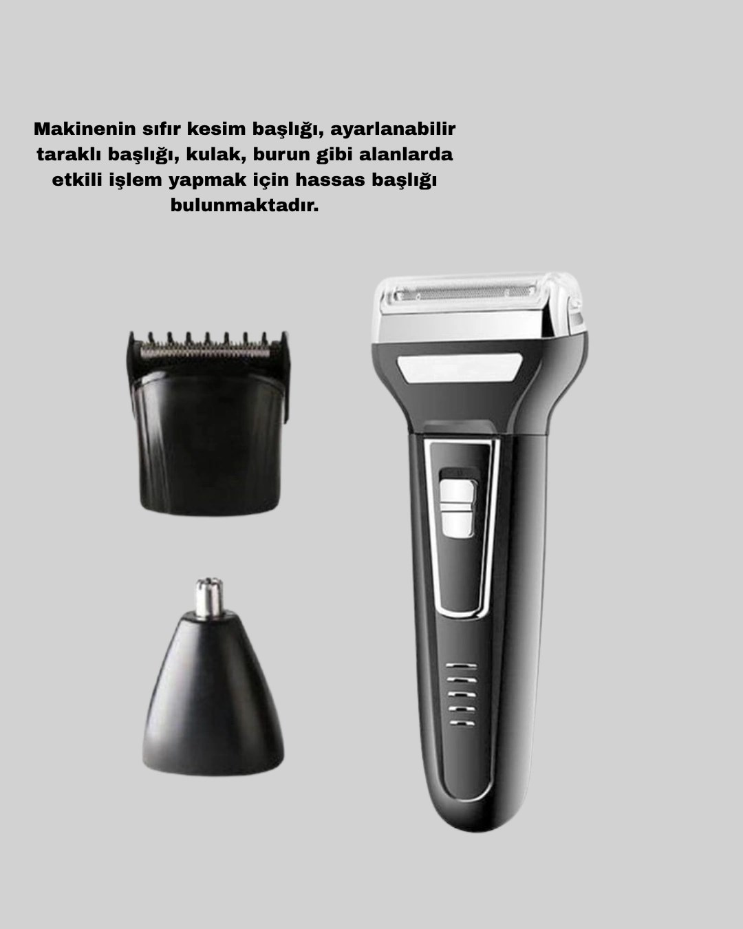 Profesyonel Şarjlı Saç Ve Sakal Tıraş Makinesi – Çelik Bıçaklı, Ayarlanabilir Başlıklı, Kablosuz