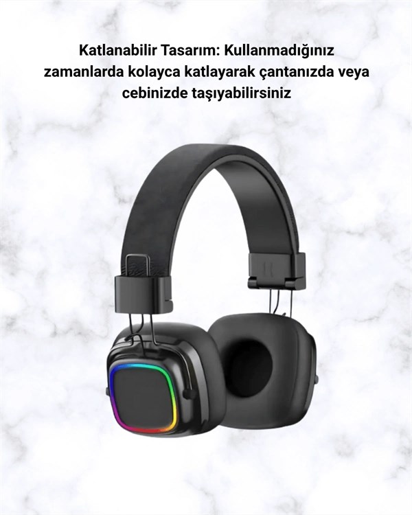 Bluetooth 5.3 Rainbow Işıklı Kulak Üstü Kablosuz Kulaklık