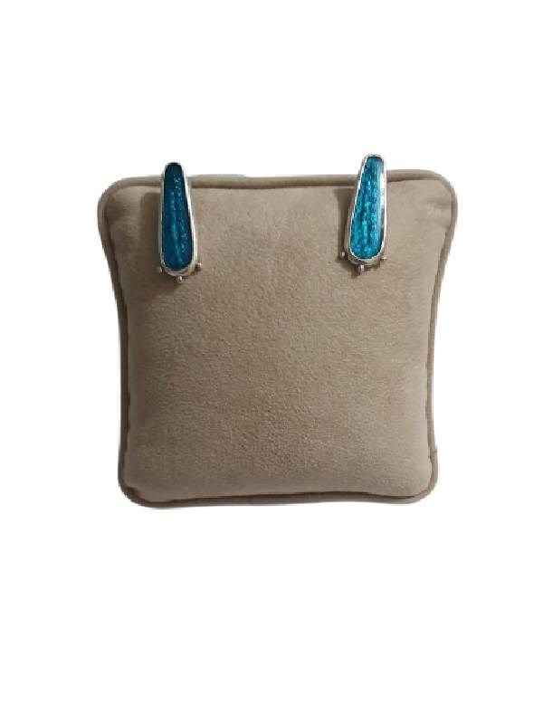 Kadın Antik Çelik Gümüş Kaplama Turkuaz Mineli Çivi Küpe