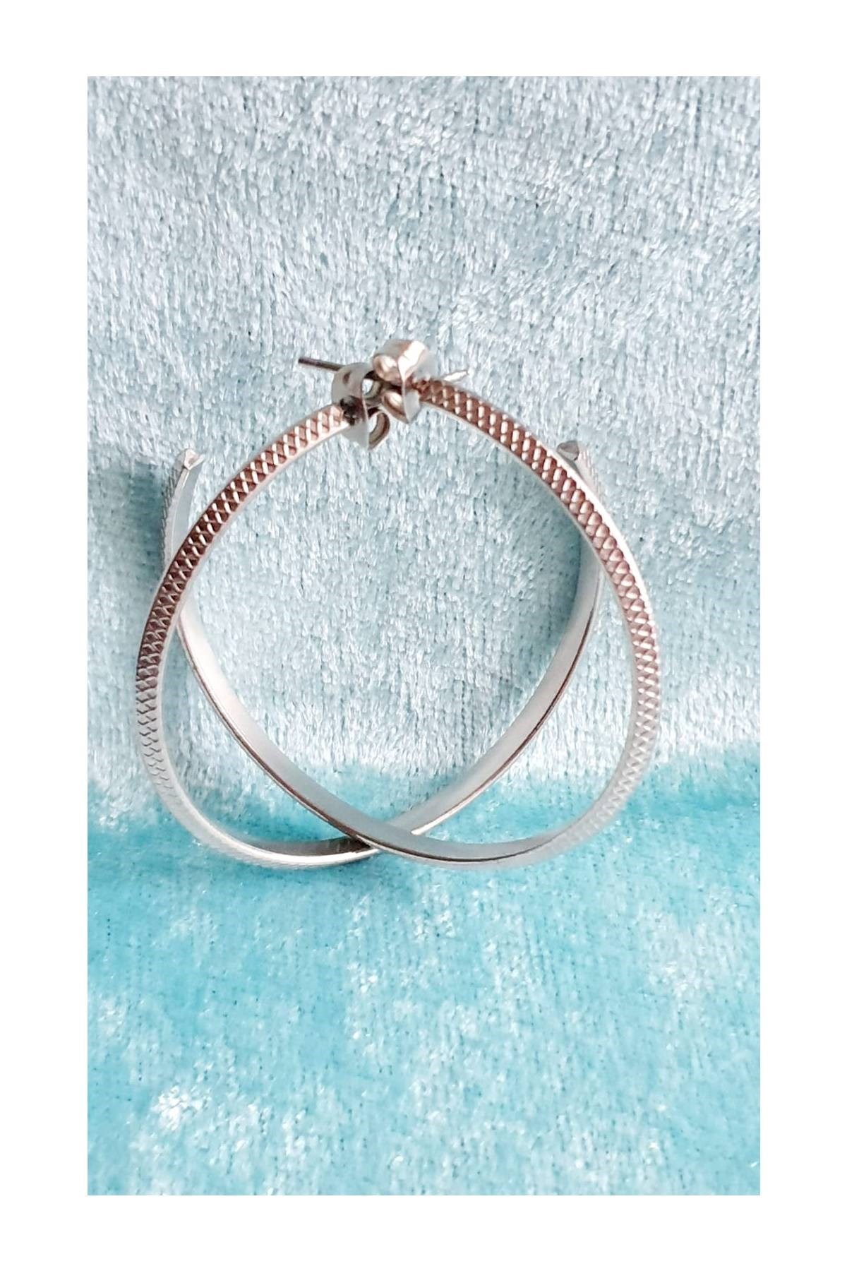Kadın Çelik Gümüş Kaplama Desenli Halka Küpe