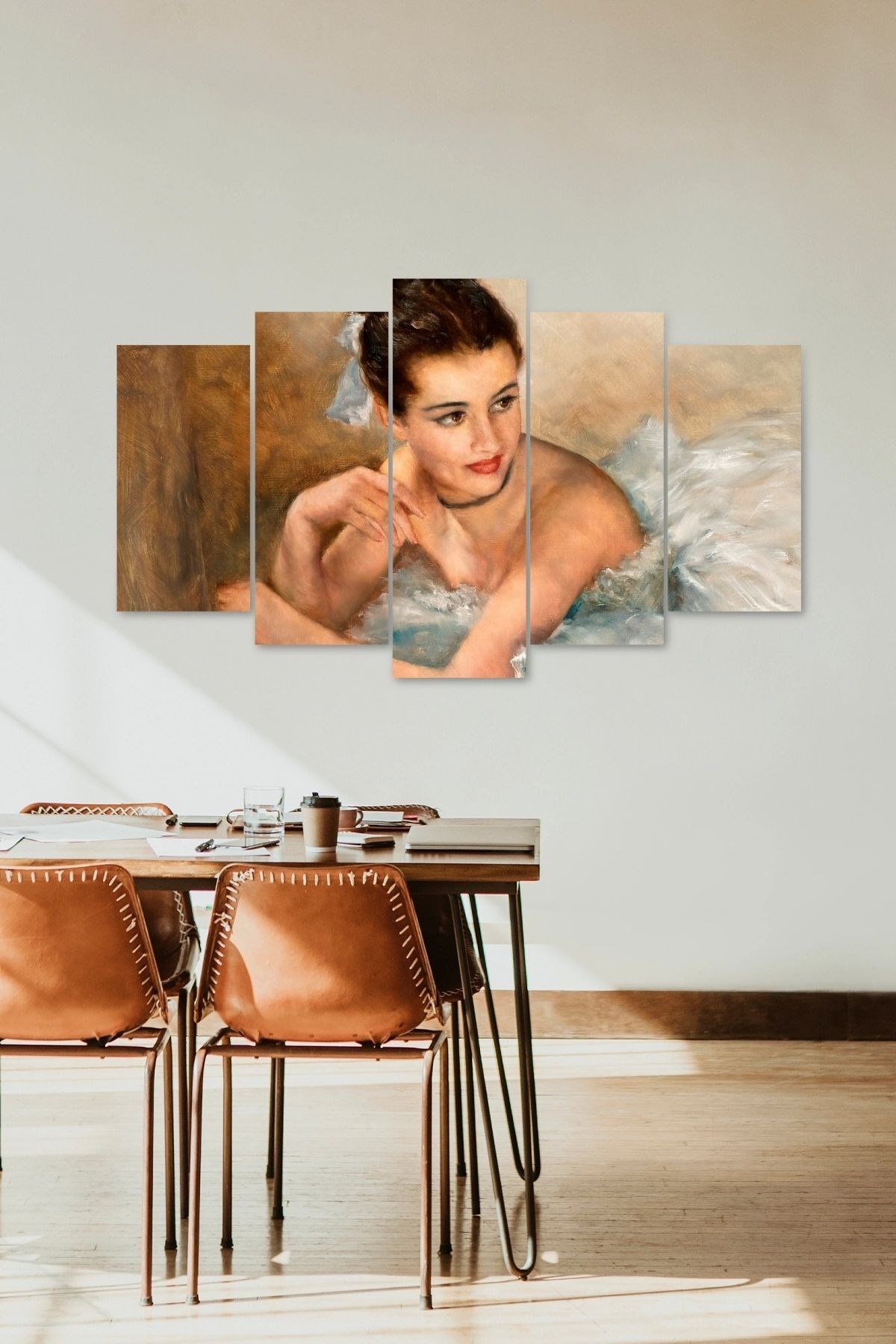 Modern tasarımıyla dikkat çeken bu 5 parçalı MDF tablo, evinizin dekorasyonuna şık bir dokunuş katıyor; Kaliteli MDF malzemesi sayesinde uzun ömürlü kullanım sunar ve dayanıklılığıyla ön plana çıkar; Ahşap yapısı ile doğal bir görünüm sağlayarak mekanınıza sıcaklık ve estetik bir hava katar;