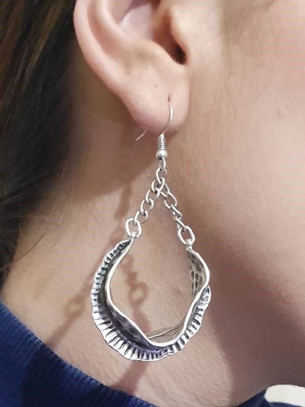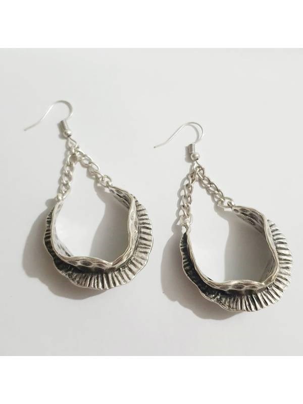 Kadın Gümüş Kaplama Antik Çelik Desenlİ Sallantılı Küpe