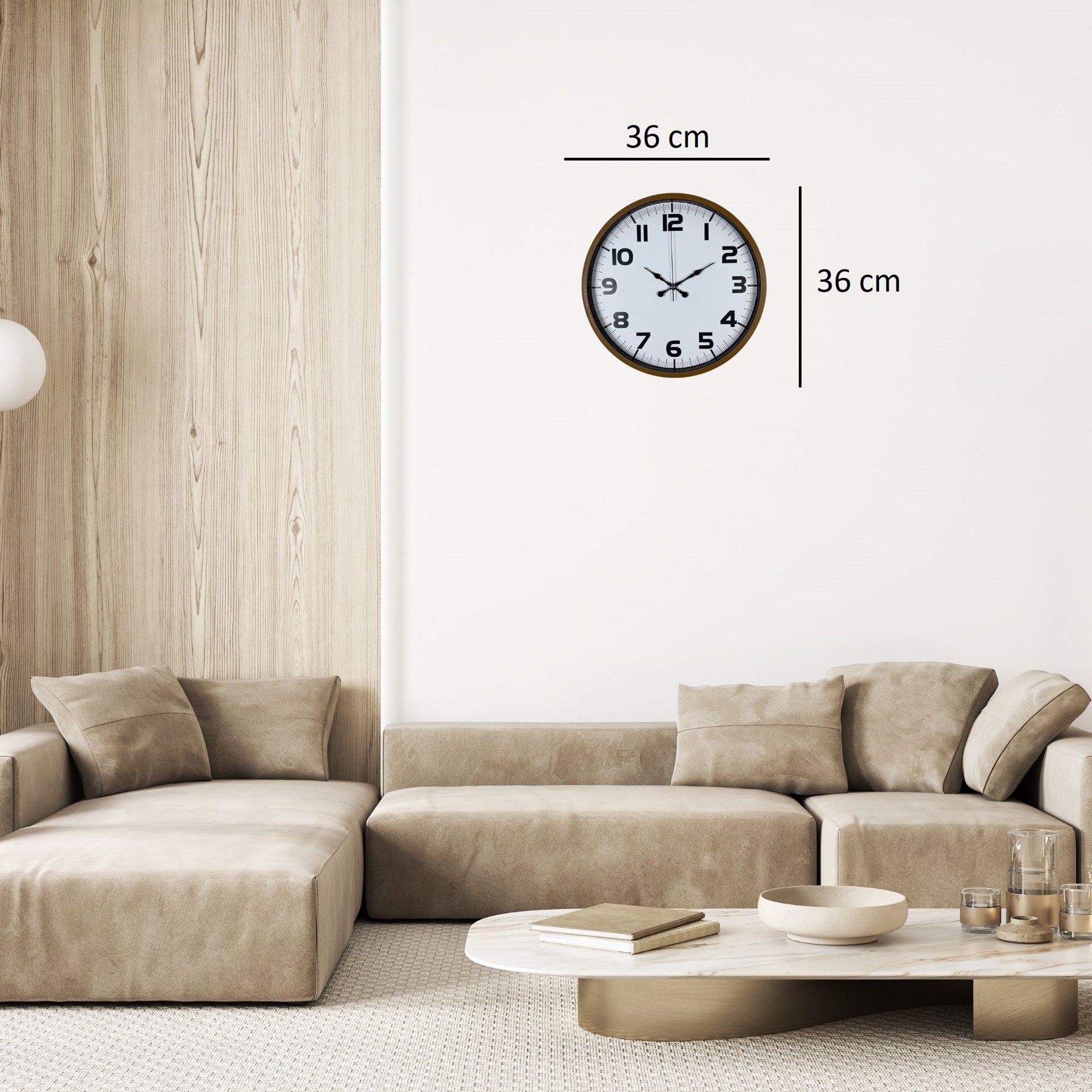 Sıcak ve doğal tonlarıyla dikkat çeken 36 cm kahverengi duvar saati, yaşam alanlarınıza hem şıklık hem de huzurlu bir atmosfer kazandırır. Ahşap tonlarını andıran modern tasarımı sayesinde salon, mutfak, ofis ve çalışma alanlarında dekoratif bir tamamlayıcı olarak öne çıkar. Büyük ve okunaklı rakamları ile zamanı uzaktan rahatlıkla takip etmenizi sağlar.