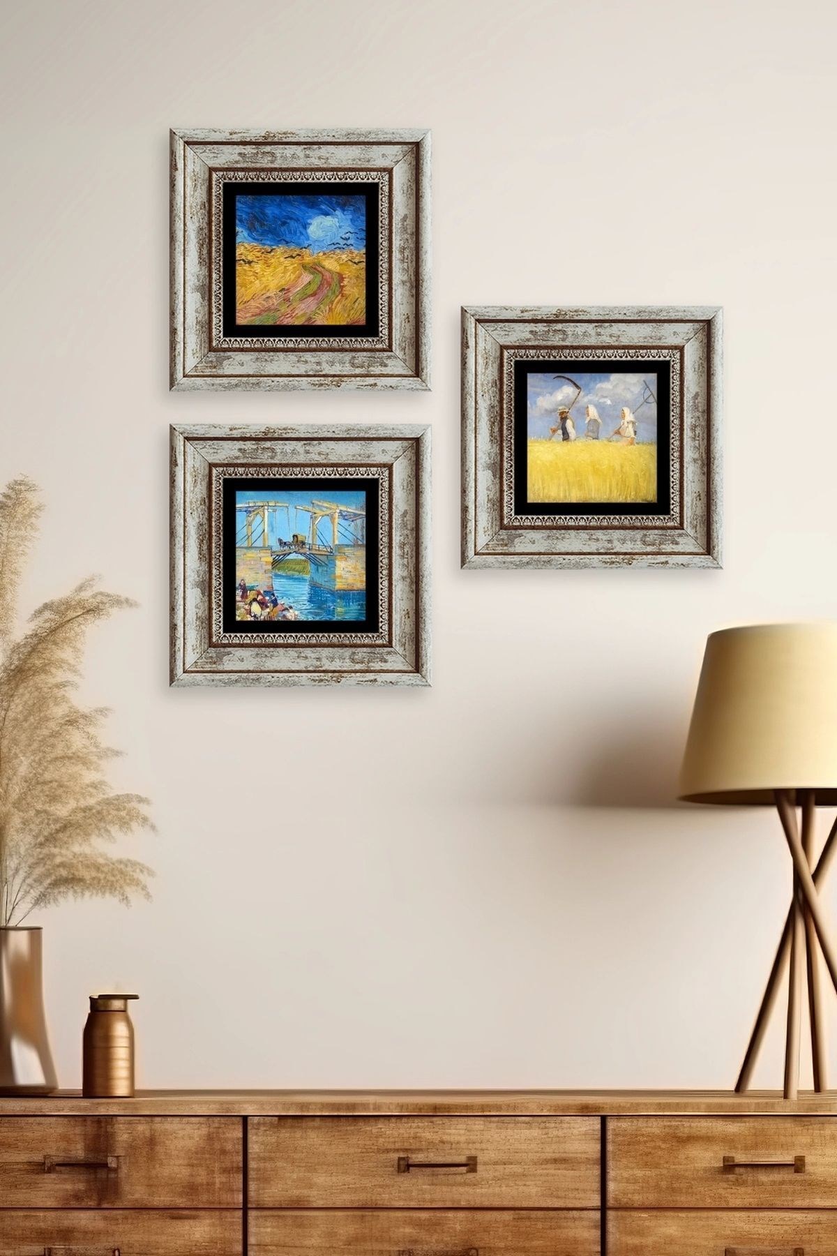 Ürün hakkında: Her Tablonun Ölçüleri: 20 cm x 20 cm veya 30 cm x 30 dir. ; Kalınlık :2,5 cm'dir. ; Ürünün arka tarafında askı aparatı bulunmaktadır. ; Kullanılan çerçeveler yüksek kaliteli, eskitme görünümlü kompozit malzemeden üretilmiştir. ; Taşların yüzeyindeki baskı teknolojisi özel olup sağlığa hiçbir zararı yoktur. ; Kullanılan malzeme dağdan çıkan gerçek taş oldugu için yüzeyinde belli oranda gözenek bulunması ve renginin krem renginin tonlarını barındırması normaldir kimyasal malzeme teması Yüzey deformasyona maruz kalabilir. ; Nemli bezle silinerek temizlenebilir. ; Isıya, suya ve neme dayanıklıdır. ; Kutu içeriği: Orijinal kutu içerisinde 3 adet çerçeveli taş duvar dekoru. ; 3 adet çerçeveli duvar dekoru ağırlığı: 750 gr çerçeve askısı ile duvara montajı yapılabilir.;