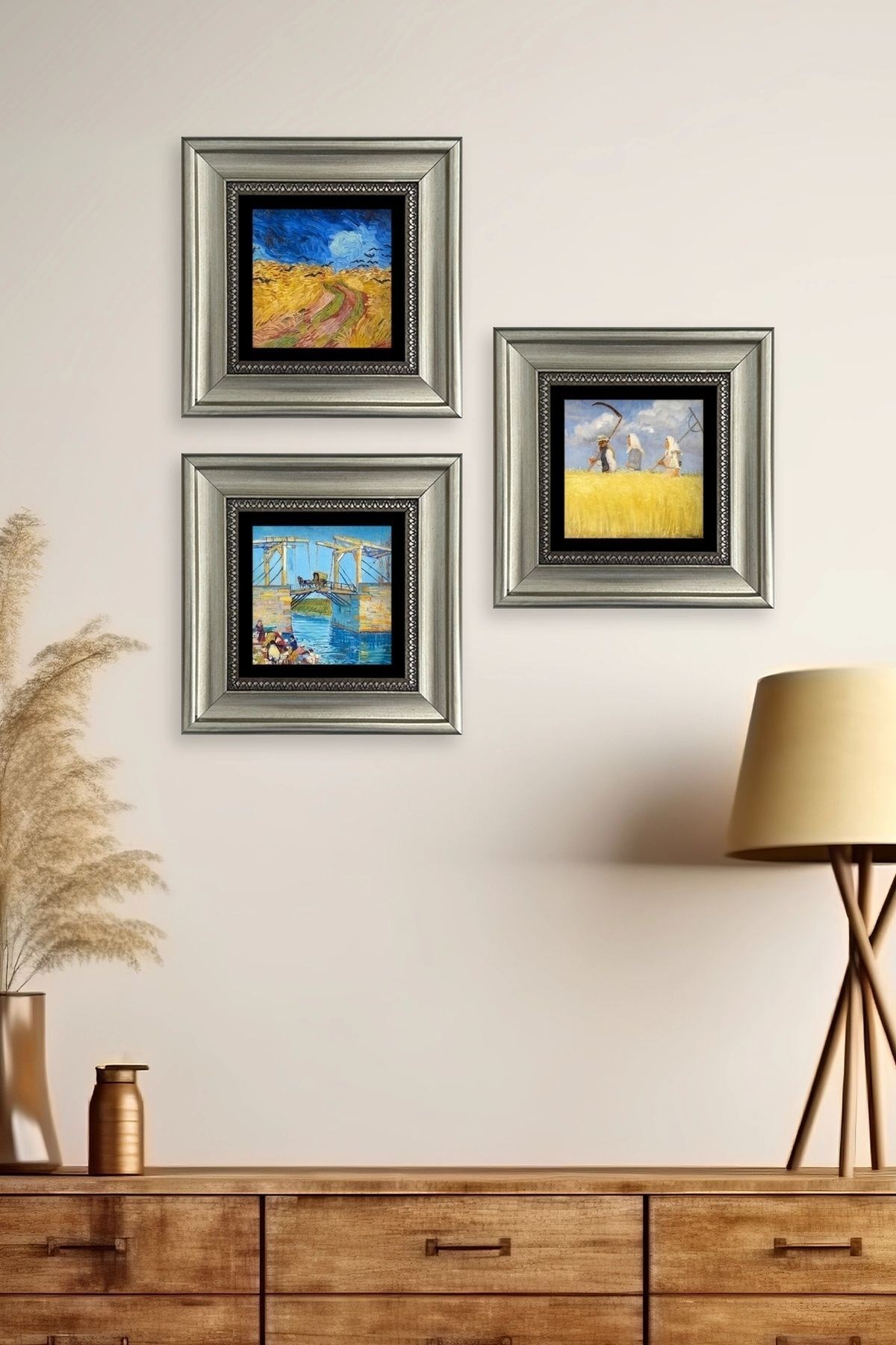 Ürün hakkında: Her Tablonun Ölçüleri: 20 cm x 20 cm veya 30 cm x 30 dir. ; Kalınlık :2,5 cm'dir. ; Ürünün arka tarafında askı aparatı bulunmaktadır. ; Kullanılan çerçeveler yüksek kaliteli, eskitme görünümlü kompozit malzemeden üretilmiştir. ; Taşların yüzeyindeki baskı teknolojisi özel olup sağlığa hiçbir zararı yoktur. ; Kullanılan malzeme dağdan çıkan gerçek taş oldugu için yüzeyinde belli oranda gözenek bulunması ve renginin krem renginin tonlarını barındırması normaldir kimyasal malzeme teması Yüzey deformasyona maruz kalabilir. ; Nemli bezle silinerek temizlenebilir. ; Isıya, suya ve neme dayanıklıdır. ; Kutu içeriği: Orijinal kutu içerisinde 3 adet çerçeveli taş duvar dekoru. ; 3 adet çerçeveli duvar dekoru ağırlığı: 750 gr çerçeve askısı ile duvara montajı yapılabilir.;