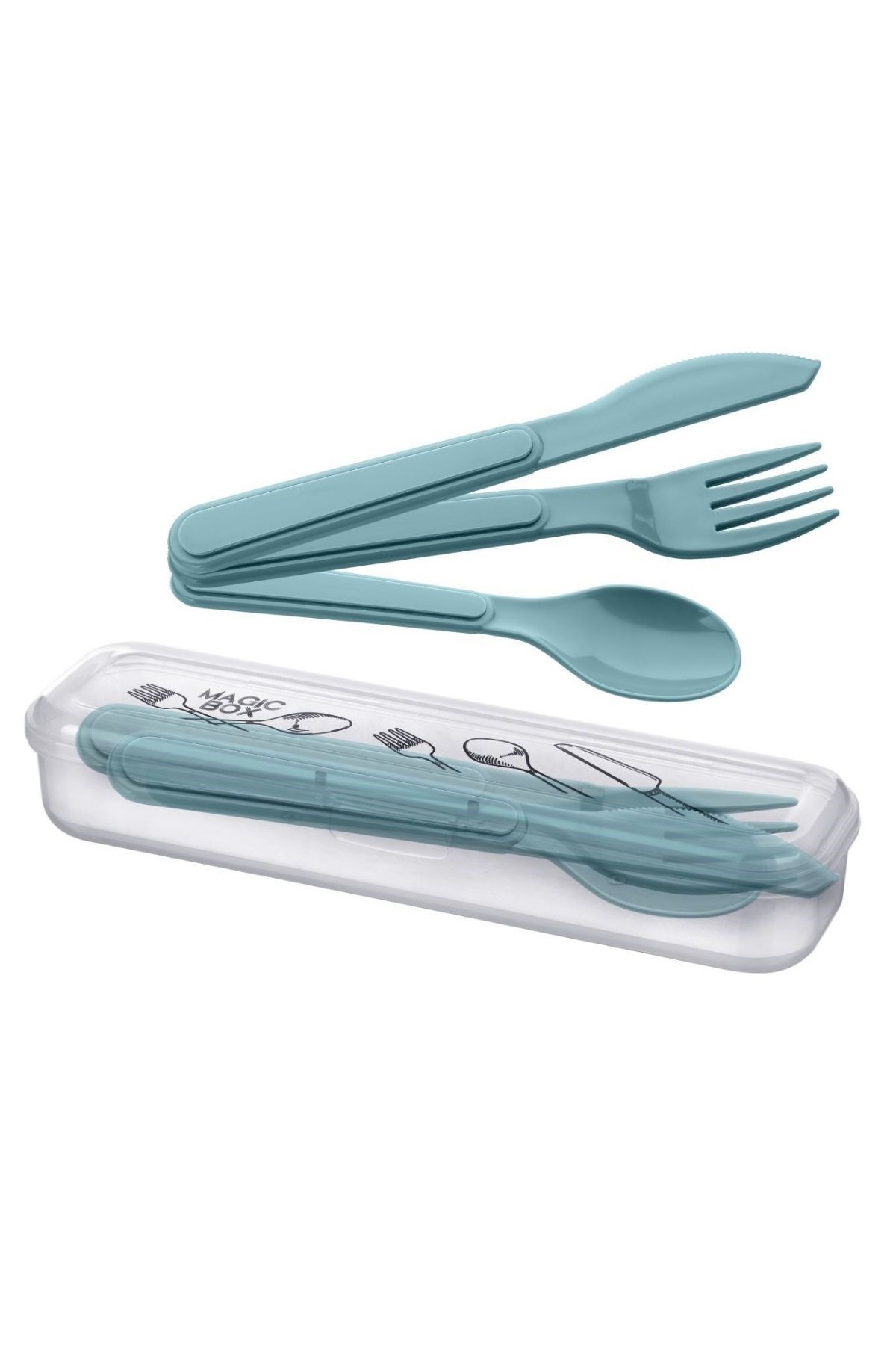 Doğa gezileri, piknikler veya dışarıda yemek yeme anlarınızda ihtiyaç duyduğunuz hijyenik ve pratik çözüm! Kendiliğinden kutulu bu set, çatal, kaşık ve bıçaktan oluşan kullanışlı bir pakettir. Yüksek kaliteli plastik malzemeden üretilmiş olup, hem dayanıklı hem de hafif yapıdadır. Kutulu tasarımı sayesinde çatal, kaşık ve bıçaklarınızı temiz ve hijyenik bir şekilde muhafaza edebilirsiniz. Seyahatlerde, okulda, ofiste veya günlük kullanımda rahatça yanınızda taşıyabilirsiniz.
