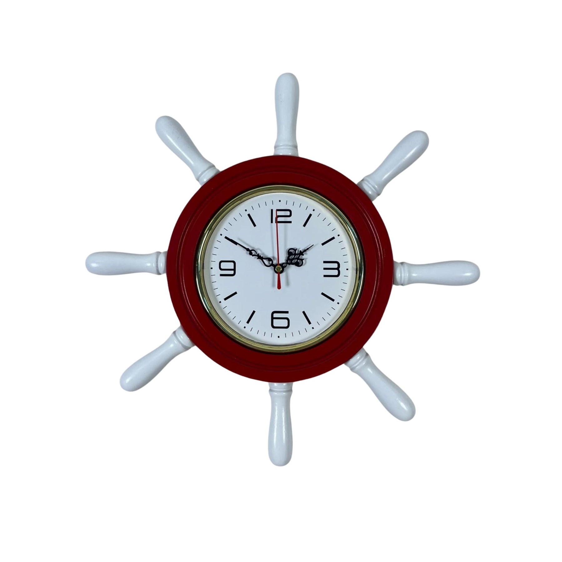 Denizcilik temalı dekorasyonlardan ilham alınarak tasarlanan 37 cm Kırmızı Dümen Duvar Saati, bulunduğu ortama canlı ve dikkat çekici bir marin atmosfer kazandırır. Gemi dümeni formundaki özel tasarımı sayesinde özellikle salon, çocuk odası, genç odası, yazlık ev ve deniz temalı dekorasyonlar için şık ve dekoratif bir duvar saatidir.