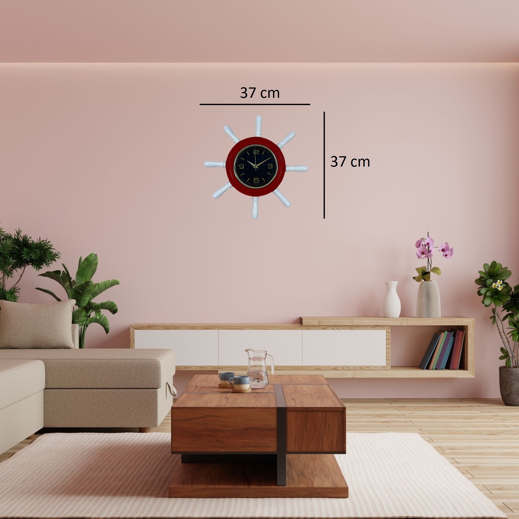 Gemi dümeni formundaki tasarımı sayesinde özellikle deniz temalı dekorasyonlarda, sahil evlerinde, yazlık mekanlarda, restoranlarda, kafelerde, otellerde ve teknelerde oldukça şık bir dekoratif aksesuar olarak kullanılabilir. Modern ve klasik dekorasyon tarzlarıyla uyum sağlayan bu saat, hem zamanı takip etmenizi sağlar hem de duvarlarınıza farklı bir karakter katar.