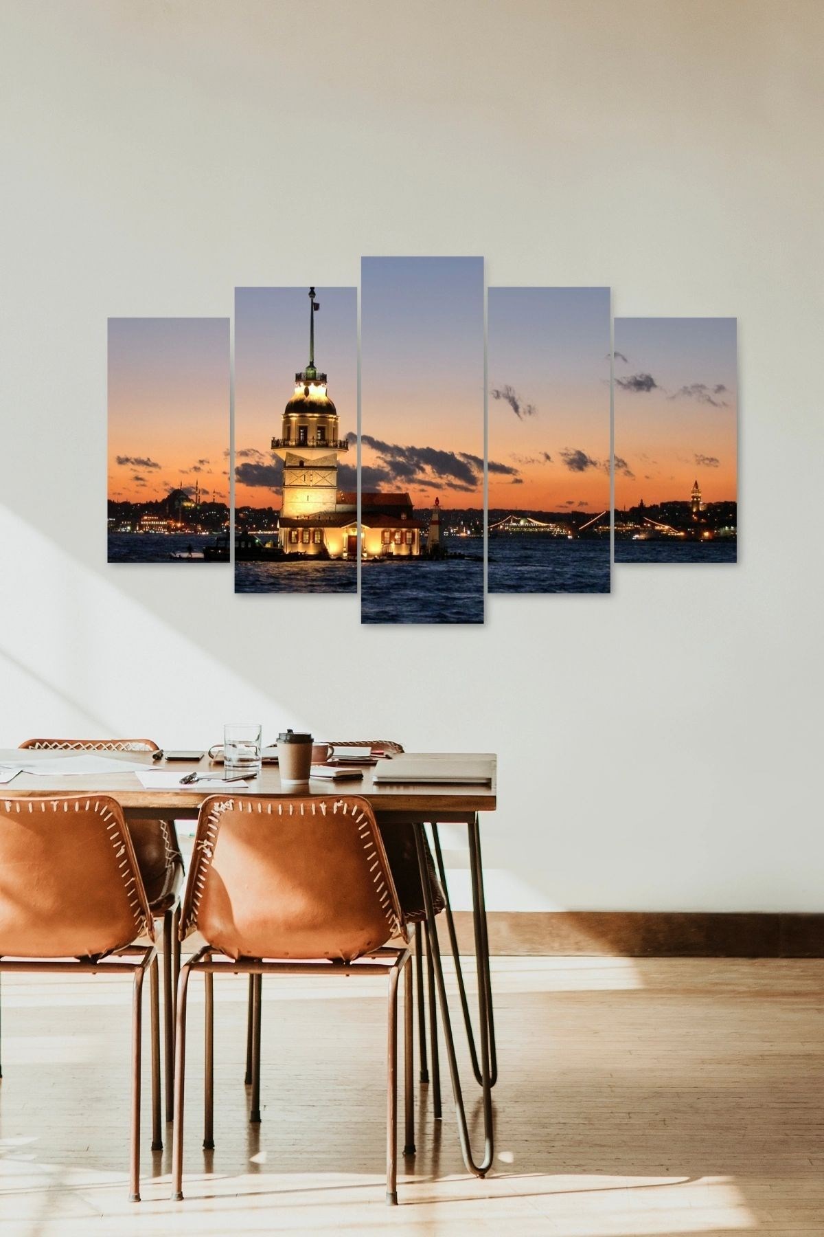 Modern tasarımıyla evinizin dekorasyonuna şıklık katan Kız Kulesi 5 parçalı MDF tablo, ahşap malzemesiyle dayanıklılığı ve estetiği bir arada sunar; Ahşap malzemesi sayesinde uzun ömürlü kullanım vaat ederken, modern stil sahibi tasarımıyla mekanınıza çağdaş bir hava katar; Beş parçadan oluşan set, Kız Kulesi'nin simgesel yapısını evinizin her köşesine taşıyarak, dekoratif bir dokunuş sağlar;